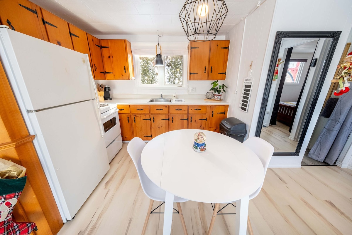 This charming chalet is perfect for a romantic getaway or a relaxing stay with friends. It comfortably accommodates 4 guests in an intimate and cozy setting, just steps away from the stunning St. Lawrence River.