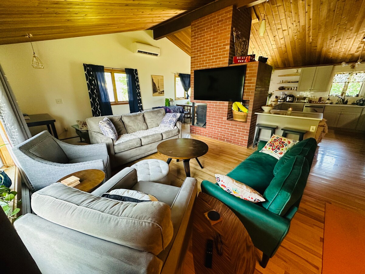 Conveniently located just minutes from I-89 for easy commutes and a short walk into downtown, this house is the perfect retreat for both relaxation and exploration. After a fun-filled day cozy up in the living room and enjoy the ambiance of a pellet stove during chilly evenings. This home provides everything you need for a comfortable stay including a private workspace, washer/dryer, central AC, and internet.