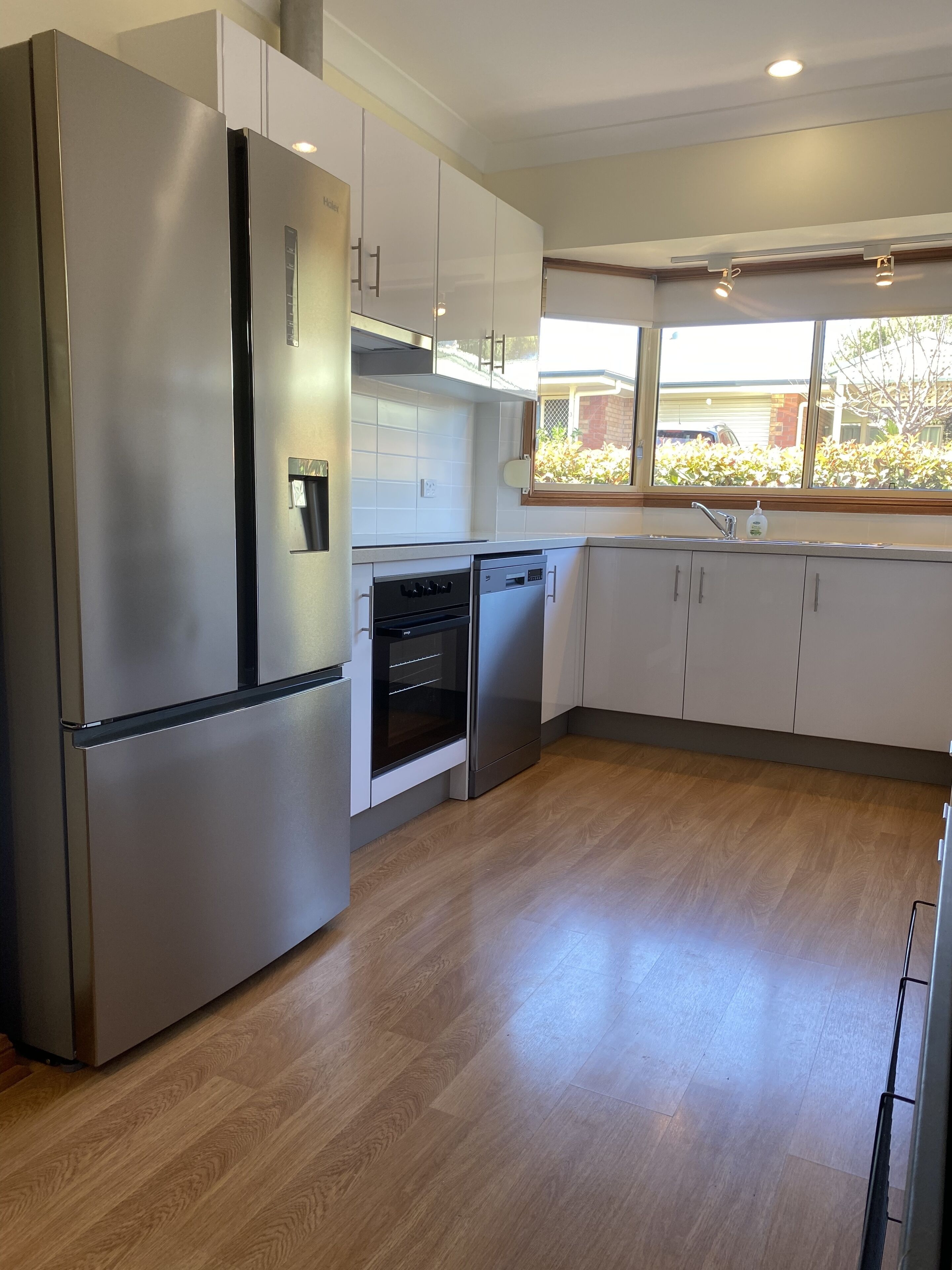 Urban apartment has home away from home comforts with 3 bedrooms, 2 bathrooms and open plan living, suitable for short or extended stays. Holiday or corporate guests will find the location ideal. Fully self contained Urban Apartment has 3 bedrooms with pillowtop queen beds, 2 bathrooms, spa bath, full kitchen and laundry facilities, including oven, dishwasher, pots n pans, cutlery and crockery etc, washer and dryer, large flat screen TV, comfy leather couch and double lock up remote garage. All linen and towels are provided.