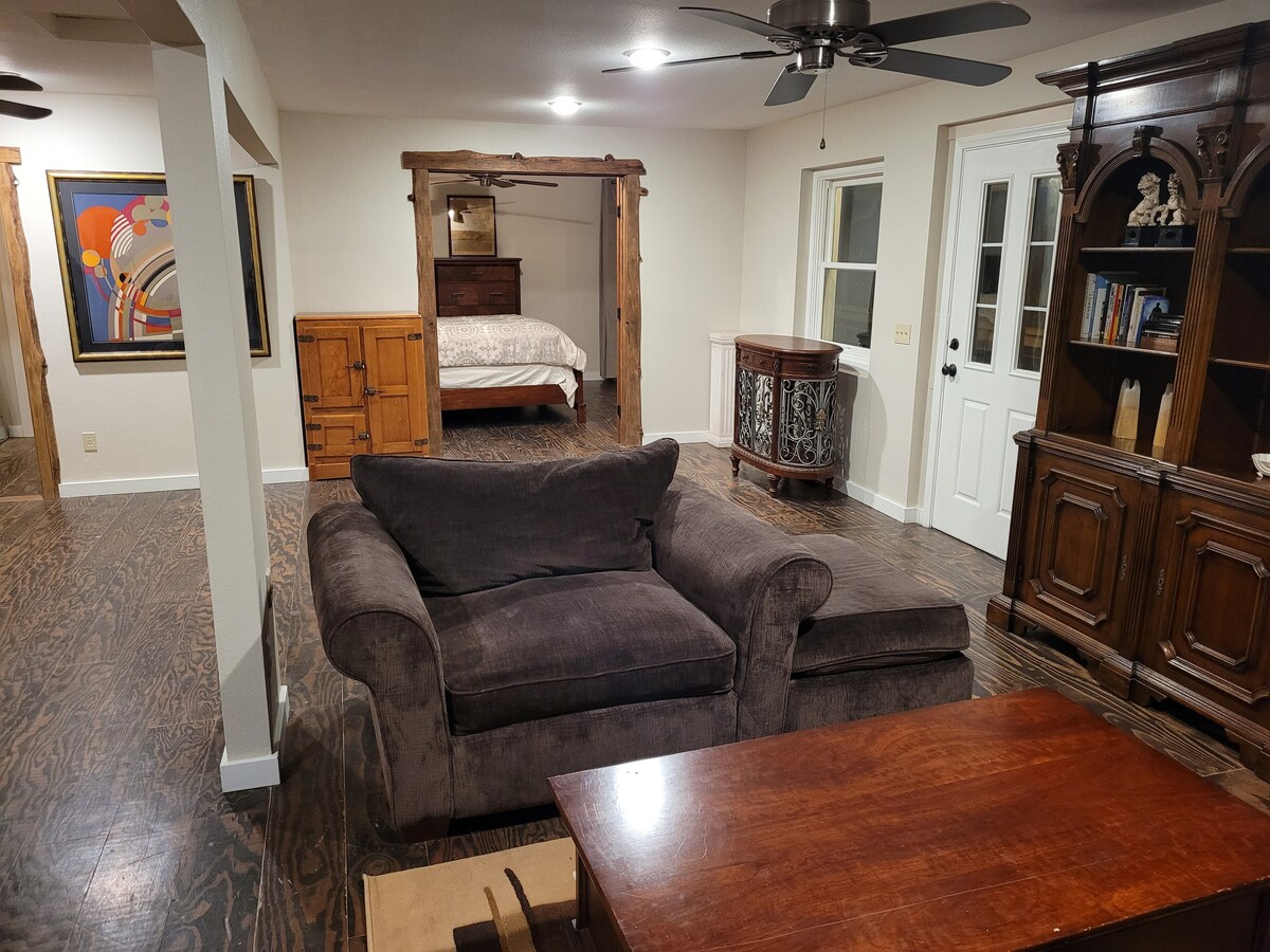 The double sofa bed is located in the den, so guests can have their own space at one end of the house while the remainder of the guests still have use of the living room as a common space.