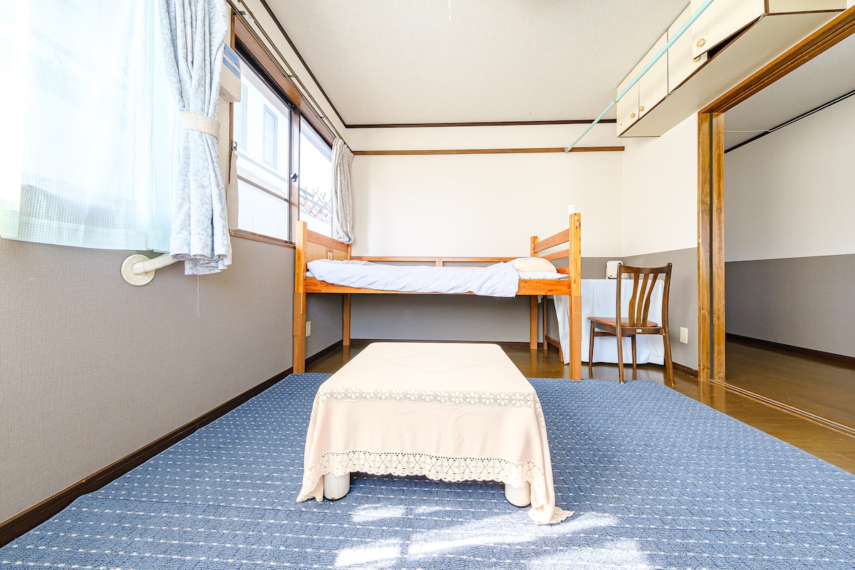 I'll lend you a room in a house.The room is 6.5 tatami mats and can accommodate up to 4 people.There are 3 toilets, 2 baths (toilet separated), washroom, washing machine in the house, and it is shared with other guests.Our host lives in the same house, so please feel free to let us know if you have any questions.