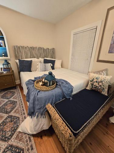 Welcome! Booking open for May 2025 and beyond! Comfortable, quiet, 1 BR/1 BA, apartment in New Bern. This is a one story walk up above detached garage. In addition to the queen bed in bedroom we have a queen air mattress on frame and twin air mattress also available. Five miles from downtown, 1.5 miles off Highway 70, 3 miles to the hospital, & 45 min. to the beach. Grocery & shops just outside the neighborhood. Perfect for tourists, travel medical staff, business travelers, & families.