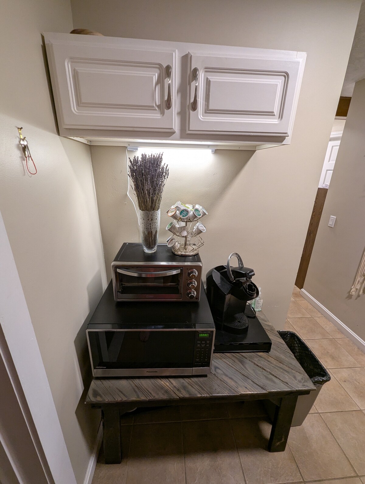 KITCHEN: Fridge, stove, dishwasher (starter pods), drip coffee maker (coffee provided), Senseo coffee maker (pods provided), cooking basics, microwave, dishware/flatware, trash bags/paper towels (starter pack)