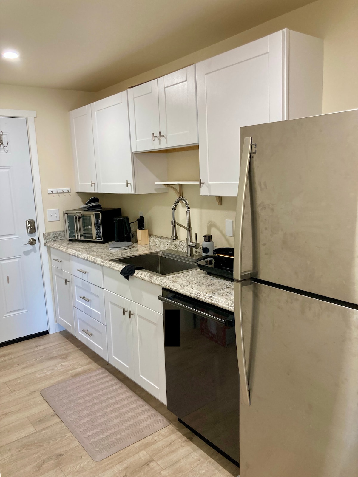 Newport’s Historic Bayfront is right out your door, with a smorgasbord of eating options, colorful murals, and unique shops; the bustle of activity as the day’s catch comes in off the boats reminds you that this is a working marine town. Enjoy seafood from Clearwater Restaurant, Local Ocean, or Ocean Bleu Seafoods at Gino’s, or bar fare from Rogue Ales Bayfront Public House or the Barge Inn Tavern. Walk further down the Bayfront to see the marina full of fishing boats, or up the hill to enjoy learning about the area’s history in the Pacific Maritime and Heritage Center. Hop in the car, and the Yaquina Lighthouse, Oregon Coast Aquarium, Hatfield Marine Science Center, and Nye Beach are minutes away. After you catch the sunset at the beach, you’ll happily return to your cozy studio, switch on the sound machine to mute the barking of sea lions and drift off to rejuvenating sleep for your next round of coastal exploration.