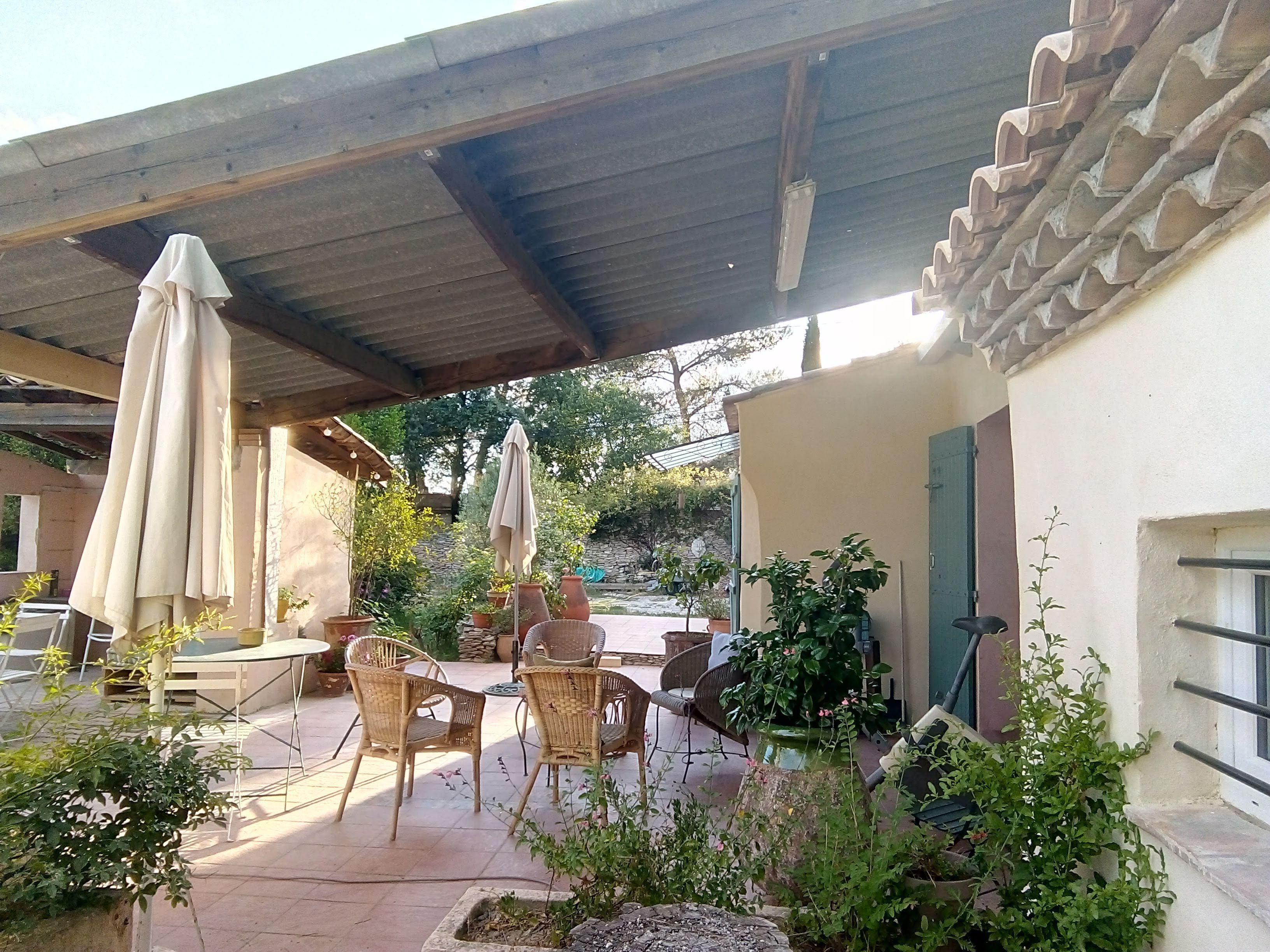 The house overlooks a large terrace equipped with an umbrella ideal for enjoying meals with family half shade, half sun.