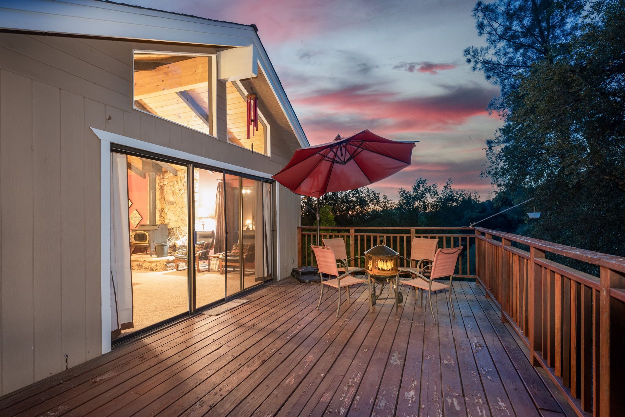 Your nature getaway will not be lacking excitement! This home features an amazing game room with pool table, arcade games, and board games. Although pictured, there is no longer a ping pong table on the lower deck. Upstairs on the outdoor balcony, grill a fresh dinner to enjoy while taking in the stunning views. Dining alfresco is a must with the home’s ample outdoor seating!