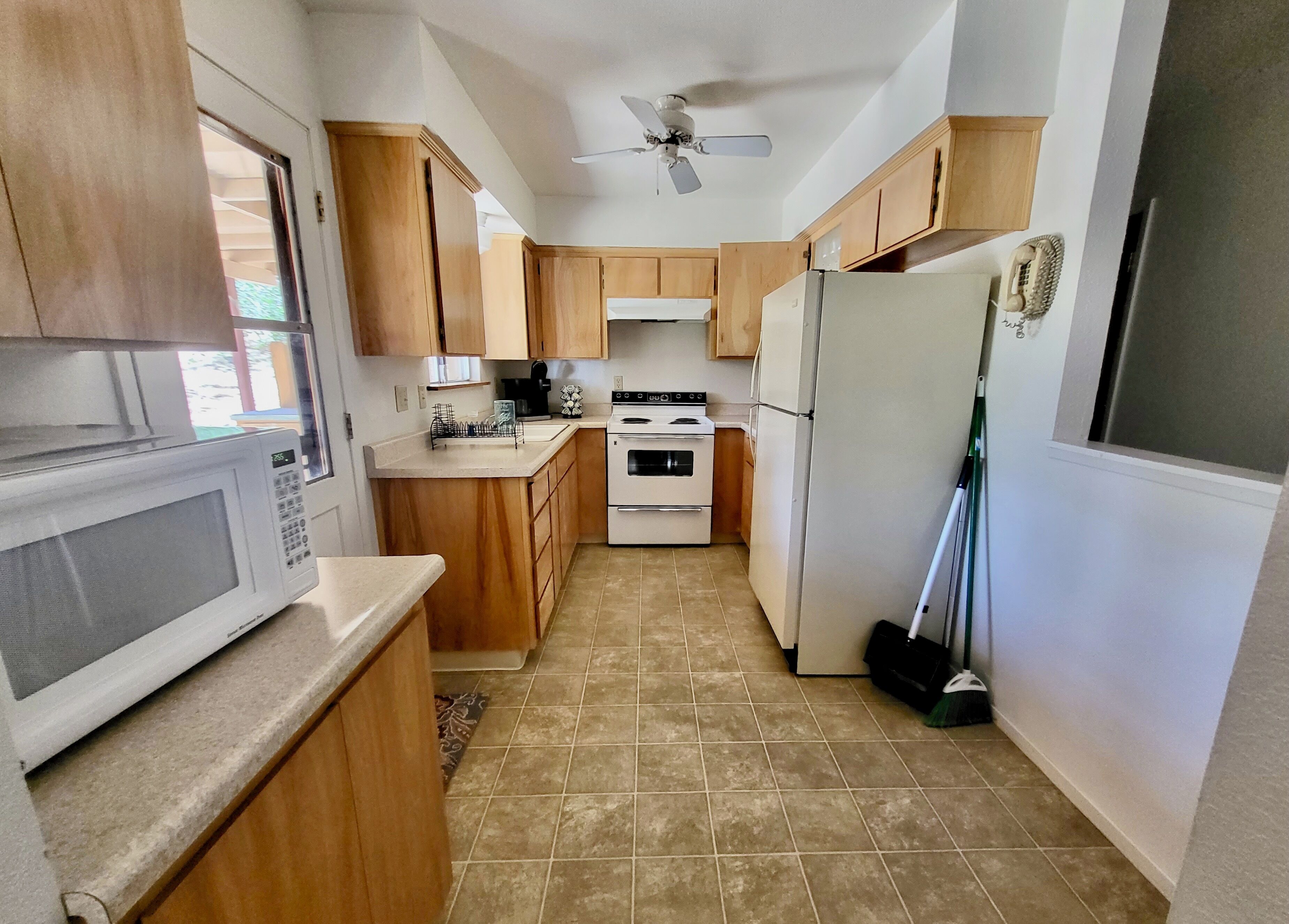 Our kitchen is fully equipped with everything you need to whip up a delicious meal. For your caffeine fix, both a Keurig and a full-size coffee pot are available. Please note that the property does not have a dishwasher.