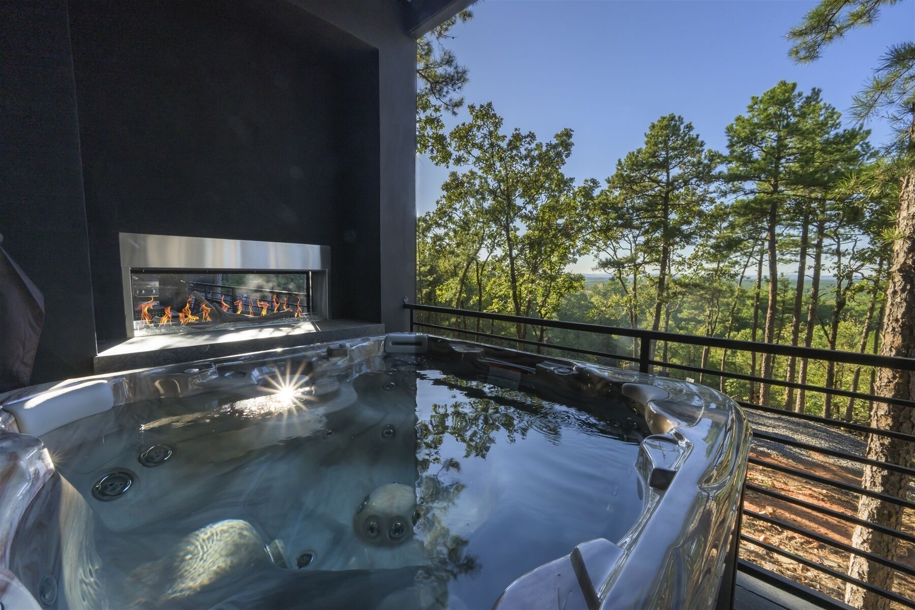 Relax in the rooftop private hot tub (enjoy the outdoor furniture!) or sip a drink in the outdoor entertainment area of this cabin. For a change of scenery, come inside and enjoy the free WiFi and digital TV.