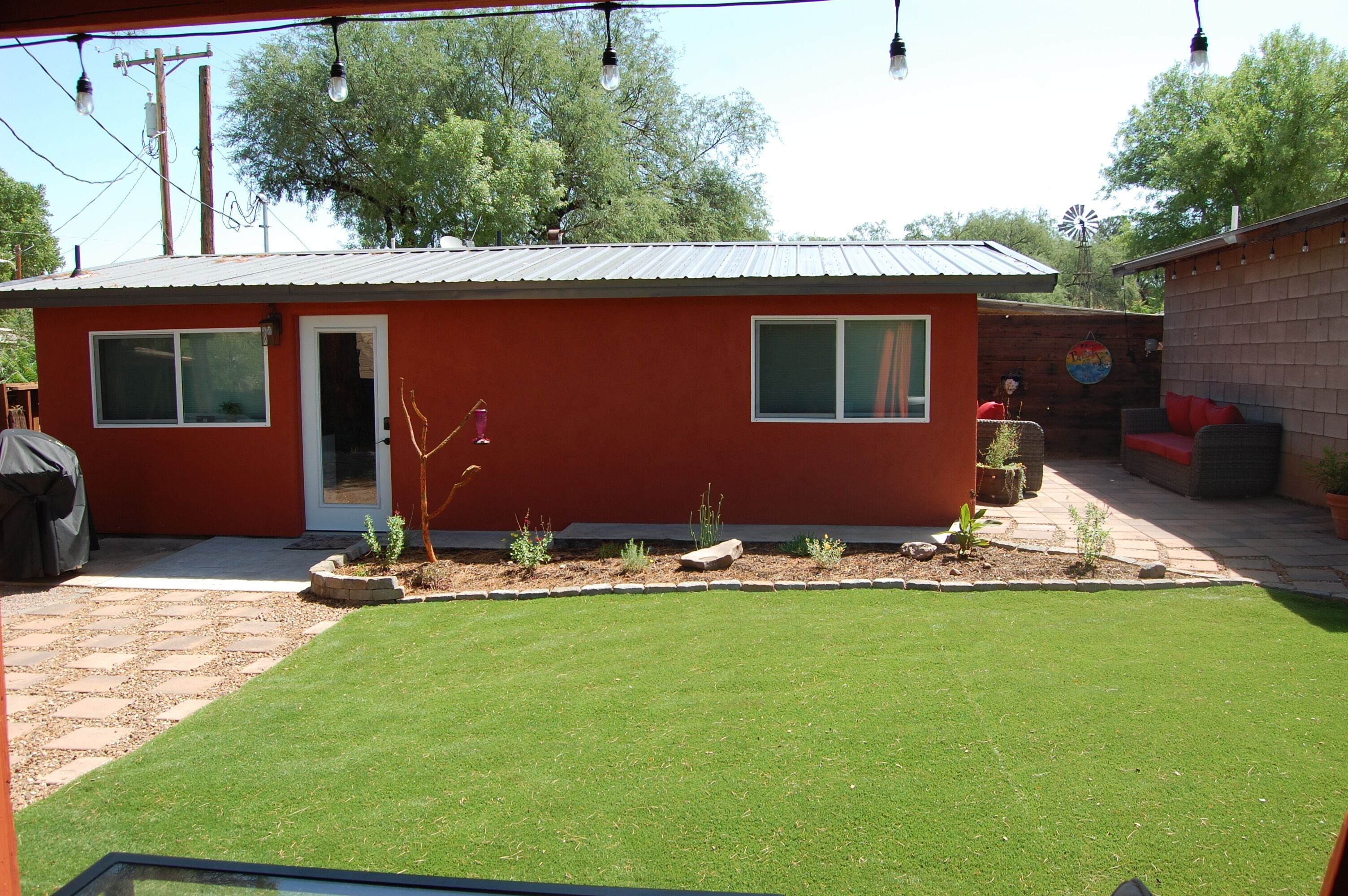 OUTDOORS: Long front porch with outdoor table for relaxing, enjoying a meal + huge communal fire pit in the yard. Wood can be purchased at the Patagonia Market 1 block down 3rd Ave or in the town of Sonoita at the gas station and/or liquor store. Sonoita, AZ is 12 miles north on HWY 82.