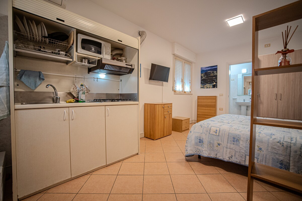 Small and cozy ground floor apartment with kitchen, the bedroom and bathroom are divided from the living area by a corridor. Ample free parking.