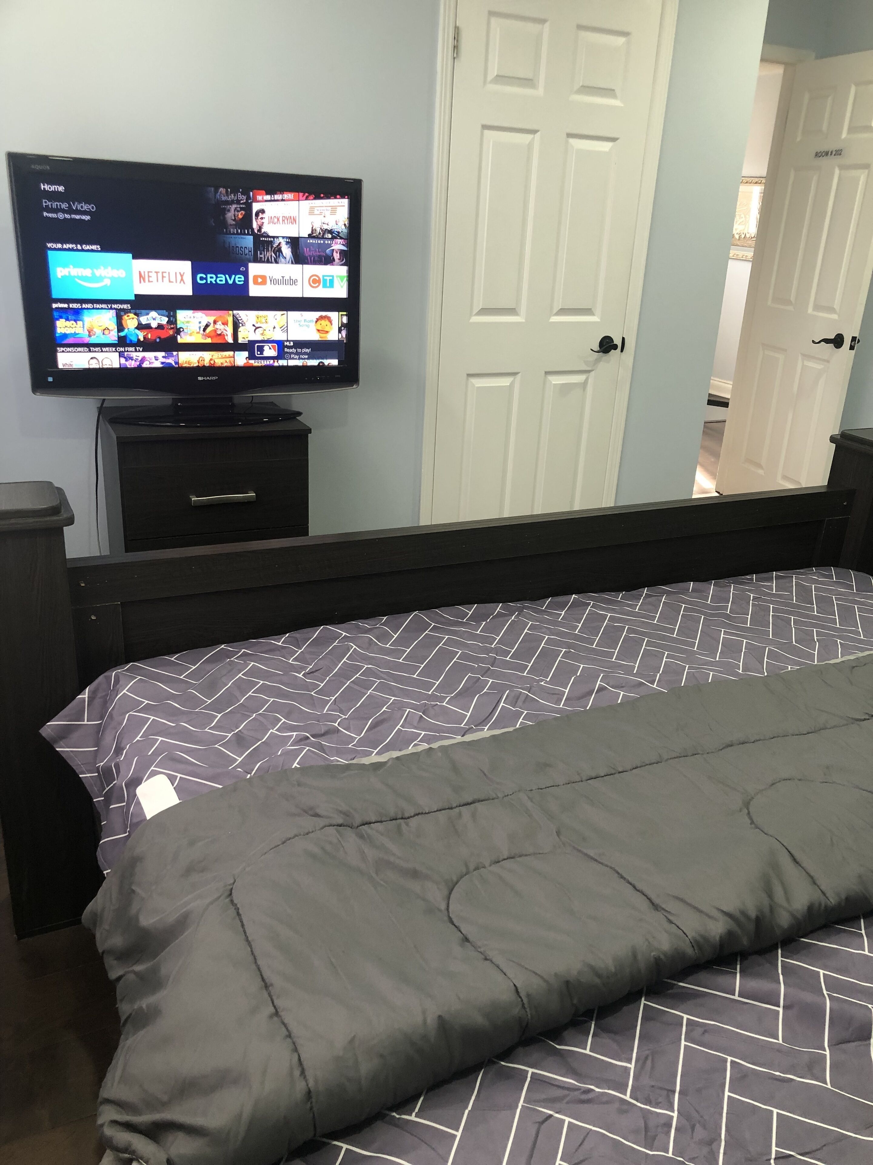 Seperate entrance to the legal basement unit SHARED bathroom,and kitchen(have all utensils for cooking and if you need something else which you could not find,let me know.) with other guests.