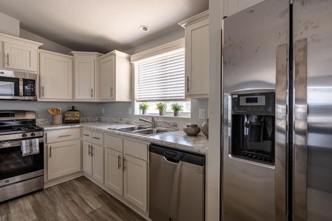 Cute and Cozy: Benji's interior is decorated with a charming boho aesthetic, creating a warm and inviting atmosphere. It's the perfect blend of boho charm and contemporary convenience. You’ve got a well-appointed kitchenette and a few staples that you’re welcome to enjoy. The kitchenette has a four-burner stove, fridge and freezer, and double sink.