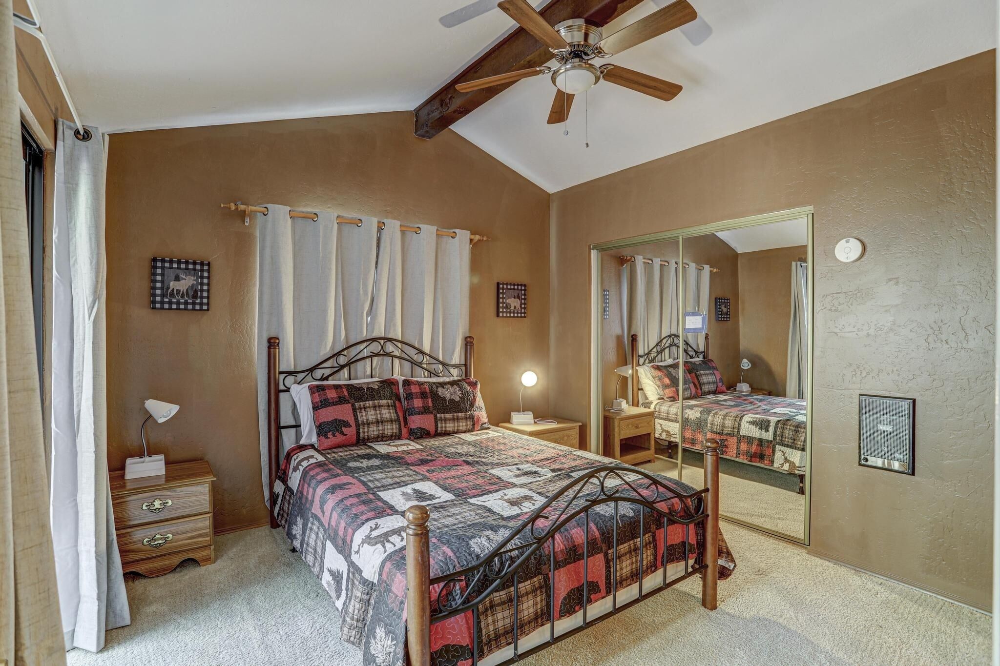 • Rustic Charm & Cozy Comfort: Wood panel walls infuse the cabin with a warm ambiance