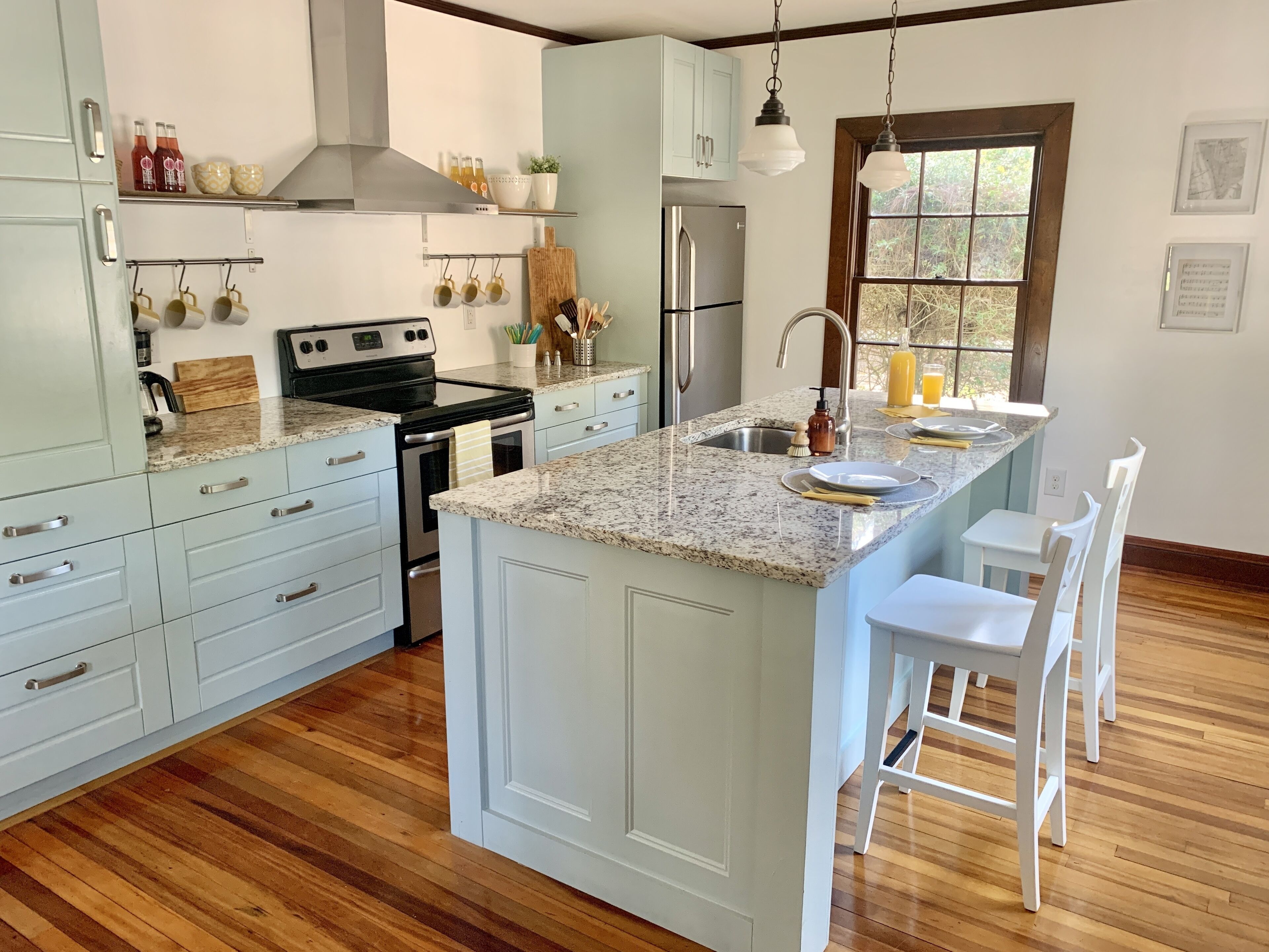 The updated kitchen features everything from a suite of stainless steel appliances to a full complement of kitchenware. This well-planned space boasts a Keurig coffee maker with provided K-cups, as well as a drip coffee maker, just in case you pick up coffee when you’re visiting the Pine Scone Café in the Village.