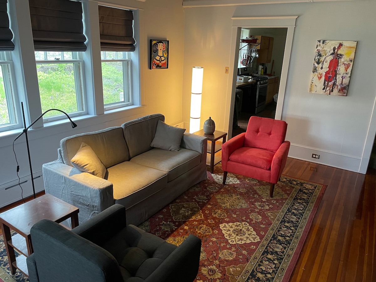 The private entrance to the Suite is on the back side of the house. Use the first (lower) driveway to park right next to the door! The suite is located in the lower level of our home, but you probably won't see us unless we're outside. You will have exclusive access to the entire Suite, which includes a mudroom to store your gear, an eat-in kitchen, bedroom/living room, and full bathroom. Outside of the suite, the yard and fire pit are shared with everyone in the house (and sometimes the neighbors!), but if you'd like to reserve the fire pit privately, it can be arranged and I'll let everyone know to stay away for the evening.