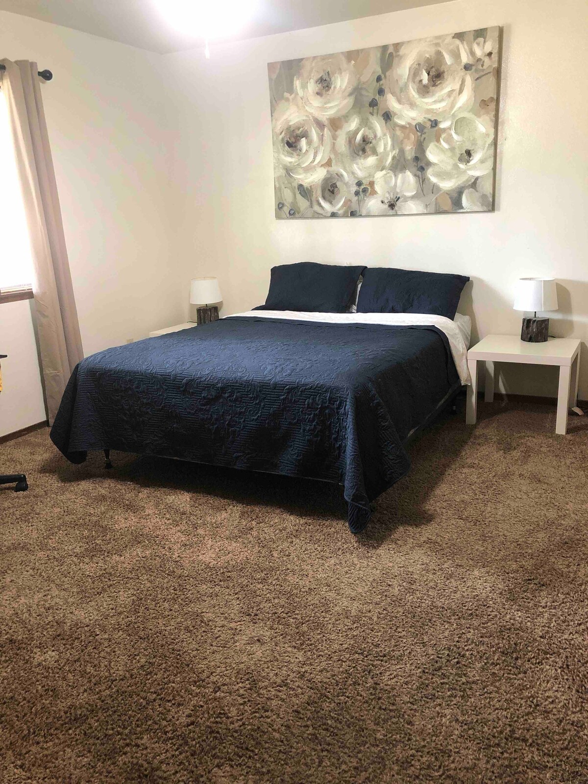 Clean and welcoming two bedroom two bath home near Sierra view hospital and downtown Porterville. 1200 ft.² of living space with two 12 x 24 suite’s W/ comfortable Queen beds. Each suite contains 2 tv’s, work station’s, coffee maker’s, microwave’s, small refrigerator’s w/ freezer’s, sitting area’s, 3/4 bathroom’s includes shower. Natural lighting all through out. Comfortable sectional couch and Elliptical in living room. Indoor laundry room with washer and dryer. Everything in the “Doc’s Corner” is new and to your liking.