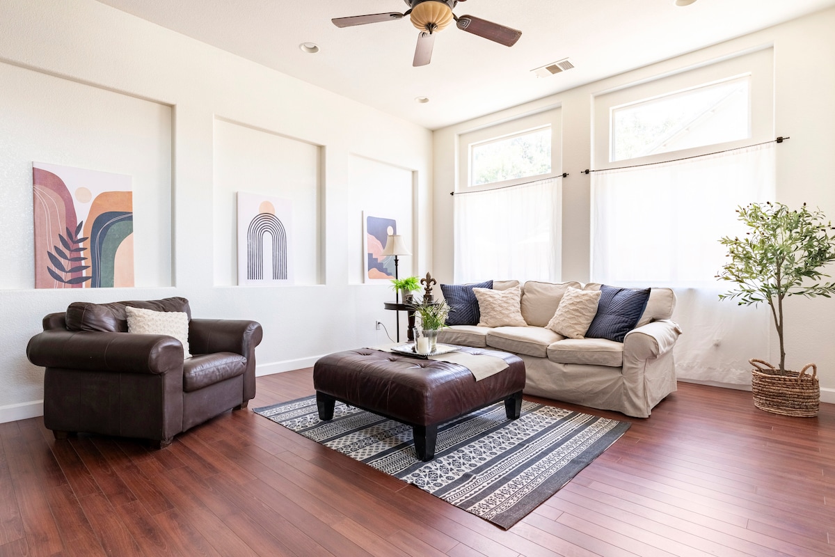 Enjoy a stylish experience at this centrally-located place. Close to shopping and eating. This newly remodeled home is close to the Sequoias, golf at River Island, or Lake Success where you can fish or enjoy water sports. This home offers WiFi, Smart TV’s, Keurig coffee machine, washer/dryer, games and quality bedding.