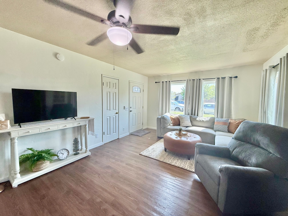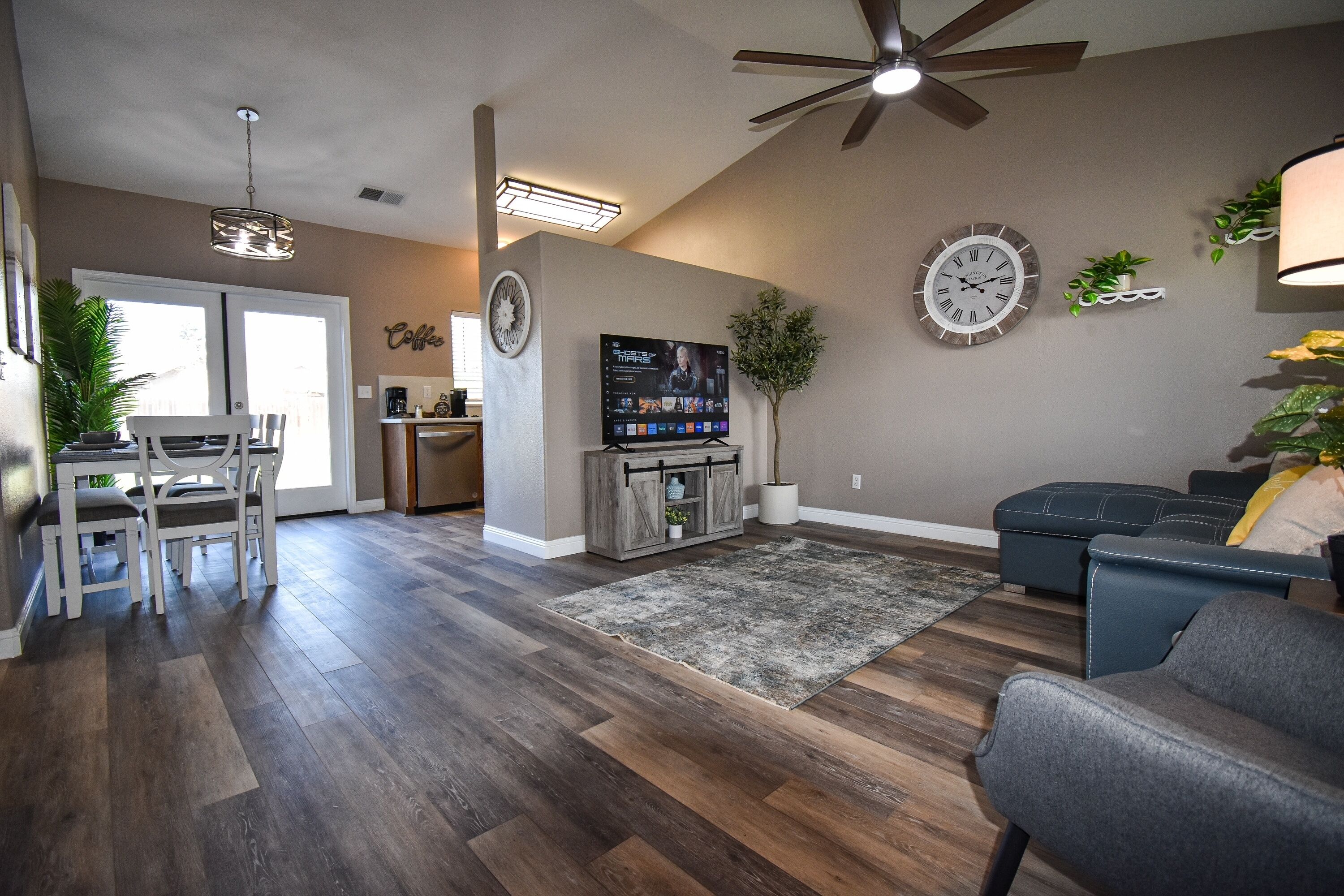 Clean and welcoming three bedroom two bath home over 1200 ft.² of living space with three good size bedrooms, all equipped with smart tv and comfortable bedding. Living room has a sectional with one recliner and one sitting chair.