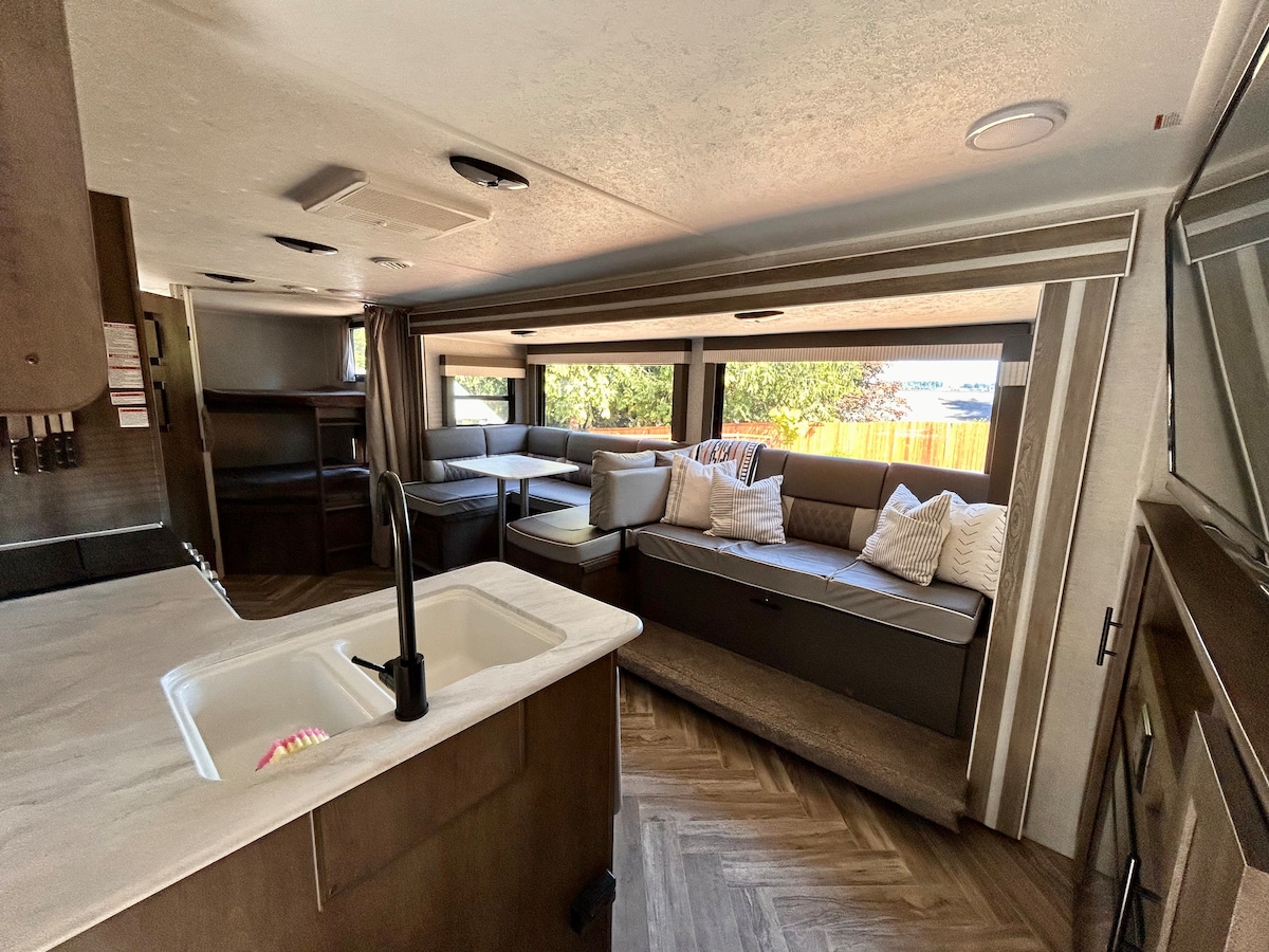 This is a brand new, very functional camper. This 20-foot RV is very clean and has everything you will find in a regular home, however, it is not like a typical residence. Things are smaller than in a house and everything is more simple. If you are not familiar or comfortable with RV living, please consider our other listings. The main reason you would stay in an RV is the unique experience. Children will very likely enjoy the cozy bunk beds and the alternative lifestyle.