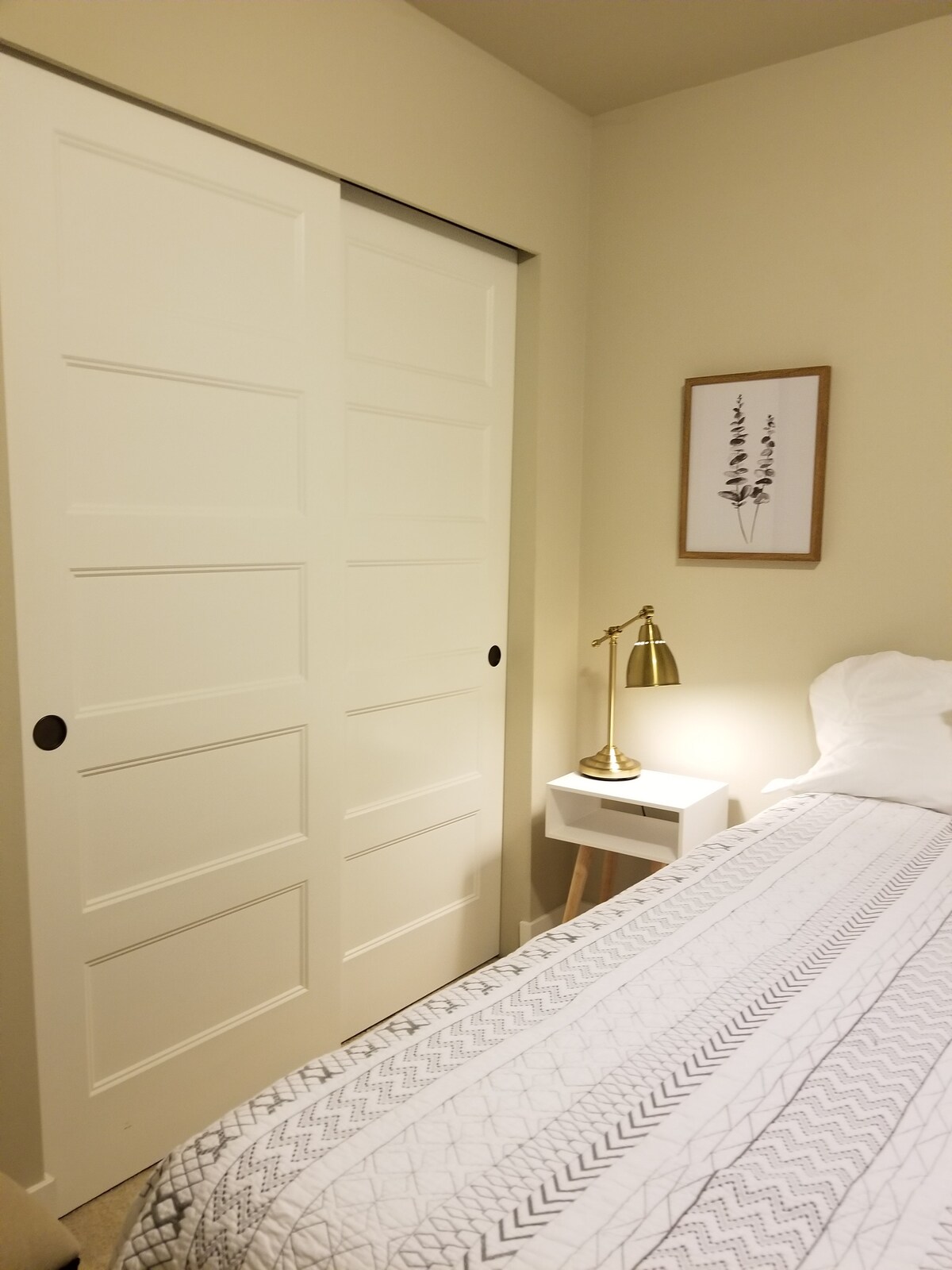 *Please keep in mind that the bed is positioned up against two walls, and there is a sloped ceiling on the entry side, so this may not be the ideal space for those who are mobility challenged.