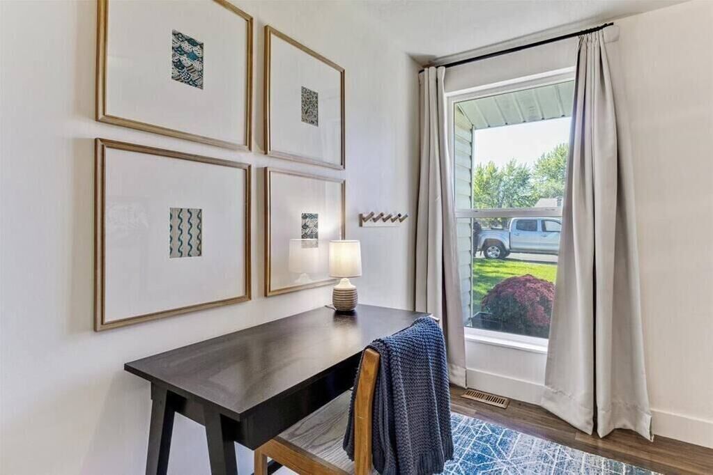 A bright blue door will meet you as you approach your getaway! Enjoy the self check process via digital keypad and enter into our chic home, where each space was intentionally designed for you! Cook your favorite meals in the custom kitchen with instant pot, crockpot, toaster, Keurig, and much more!