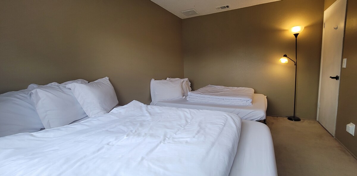 Default Setup: two queen size beds. One mattress is medium soft, another - medium firm. You can select your bed according to your preference!