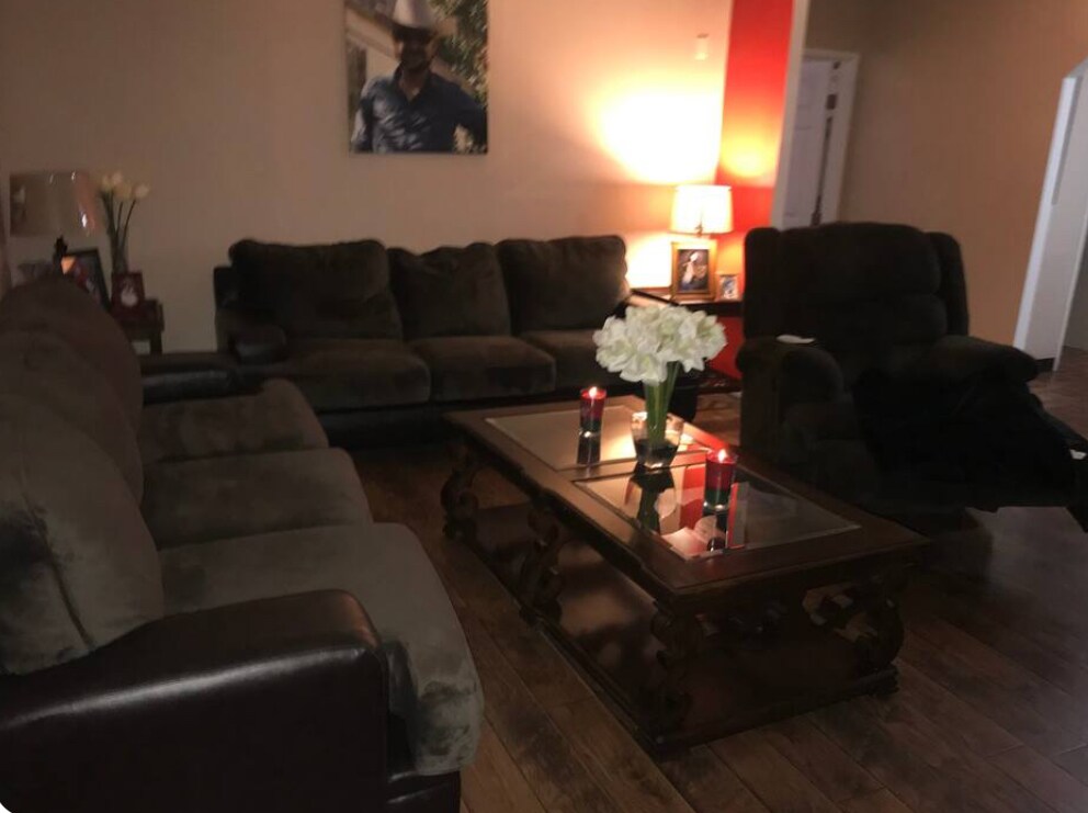 This double wide trailer has all of the space needed to make you feel as if you’re in a house. There are two living rooms, one with two couches and a flat screen tv to help you relax after your long drive and travels. The main living room is right next to the dining room and just steps away from the kitchen. The second living room is directly next to the kitchen and is completely furnished as well along with a fireplace.
