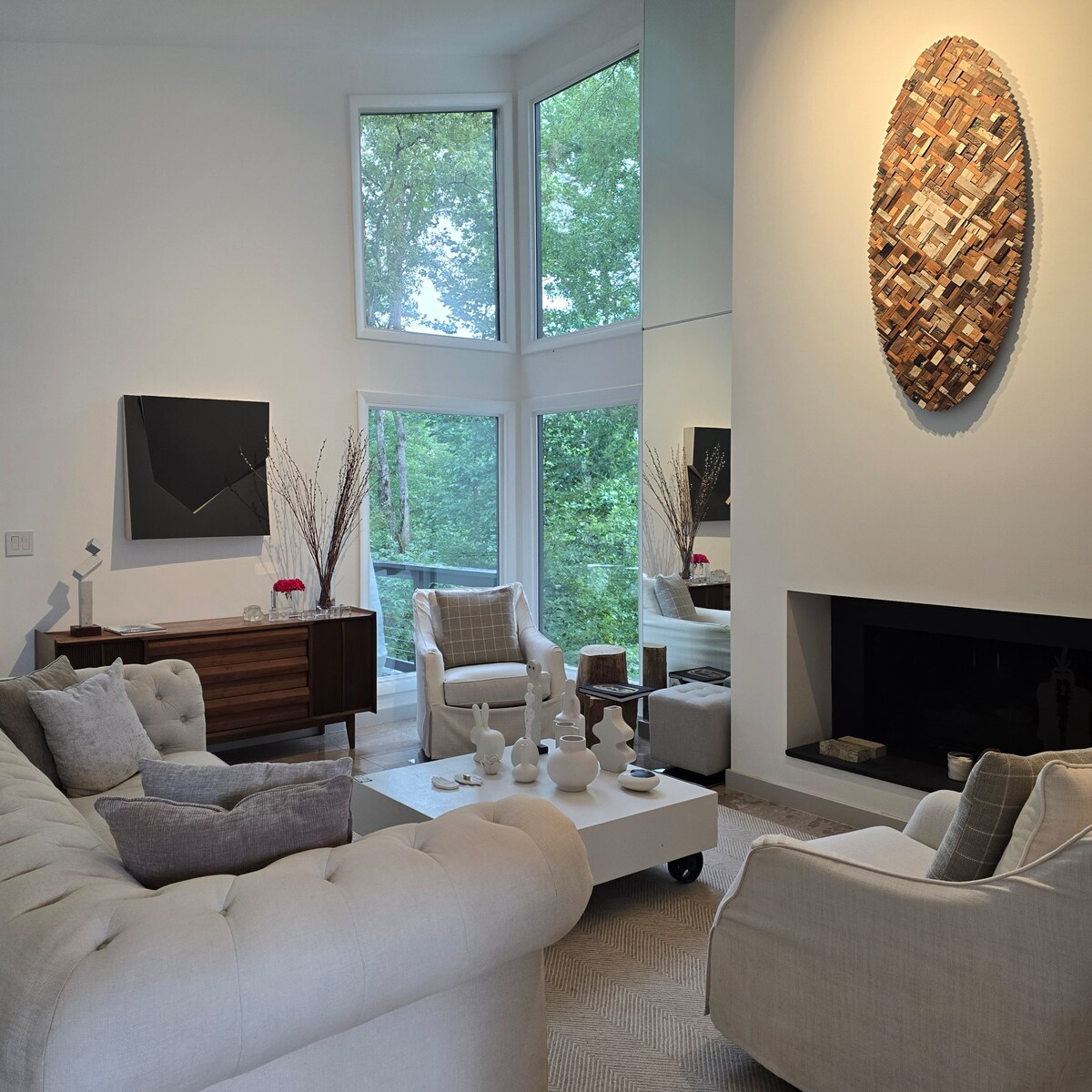 Unwind and relax in front of a warm fire and enjoy your favorite streaming service on the 75" 4k Smart TV in the main living room or read a good book in the sitting area overlooking the wooded backyard area.