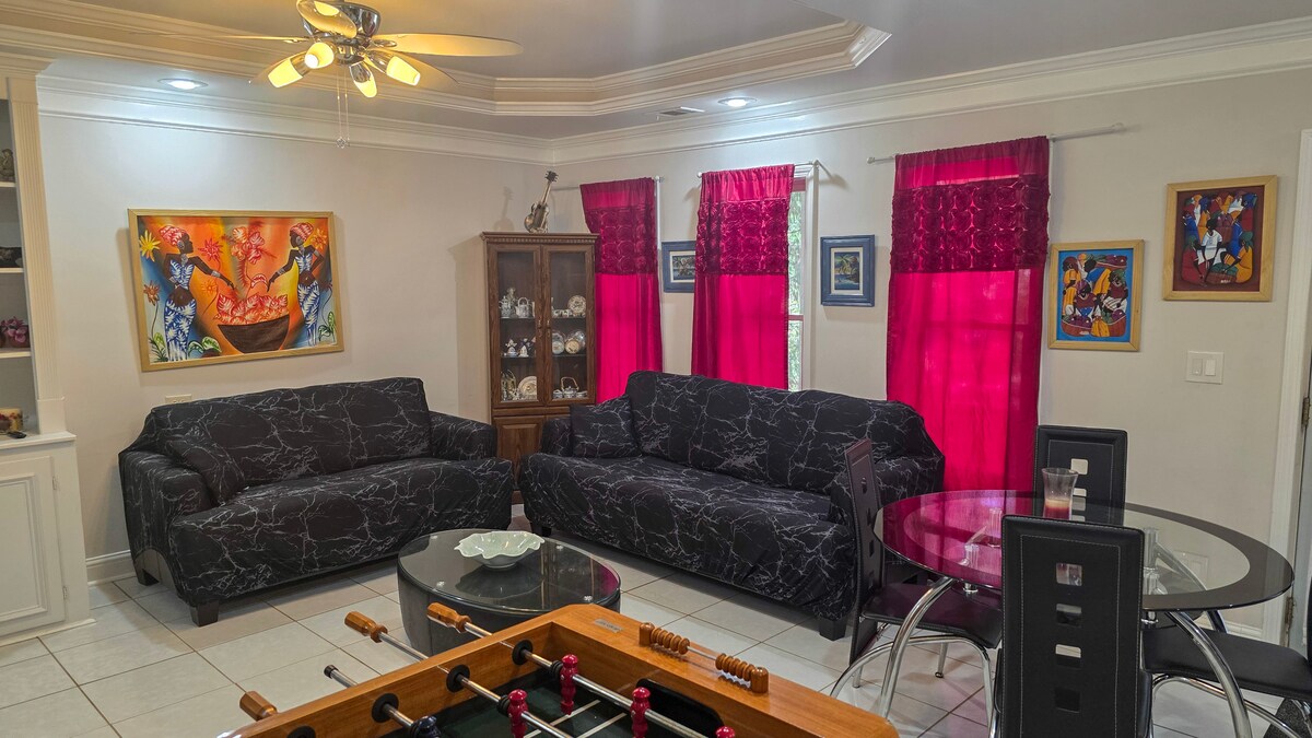 Great spacious home with great entertainment!! is located in Roswell, just 17 miles from Historic Stone Mountain Villiage and 18 miles from Atlanta History Center. This property offers access to a balcony and free private parking. Truist Park is 20 miles from the vacation home and Cobb Energy Performing Arts Centre is 20 miles away. With free Wifi, this 8-bedroom vacation home provides a cable flat-screen TV, a washing machine, and a fully equipped kitchen with a dishwasher and oven. Featuring air conditioning, this unit has a dressing room and a fireplace. The property has an outdoor dining area. Guests can also relax in the garden. MARTA-Indian Creek Station is 20 miles from the vacation home, while Stone Mountain Carving is 20 miles away.