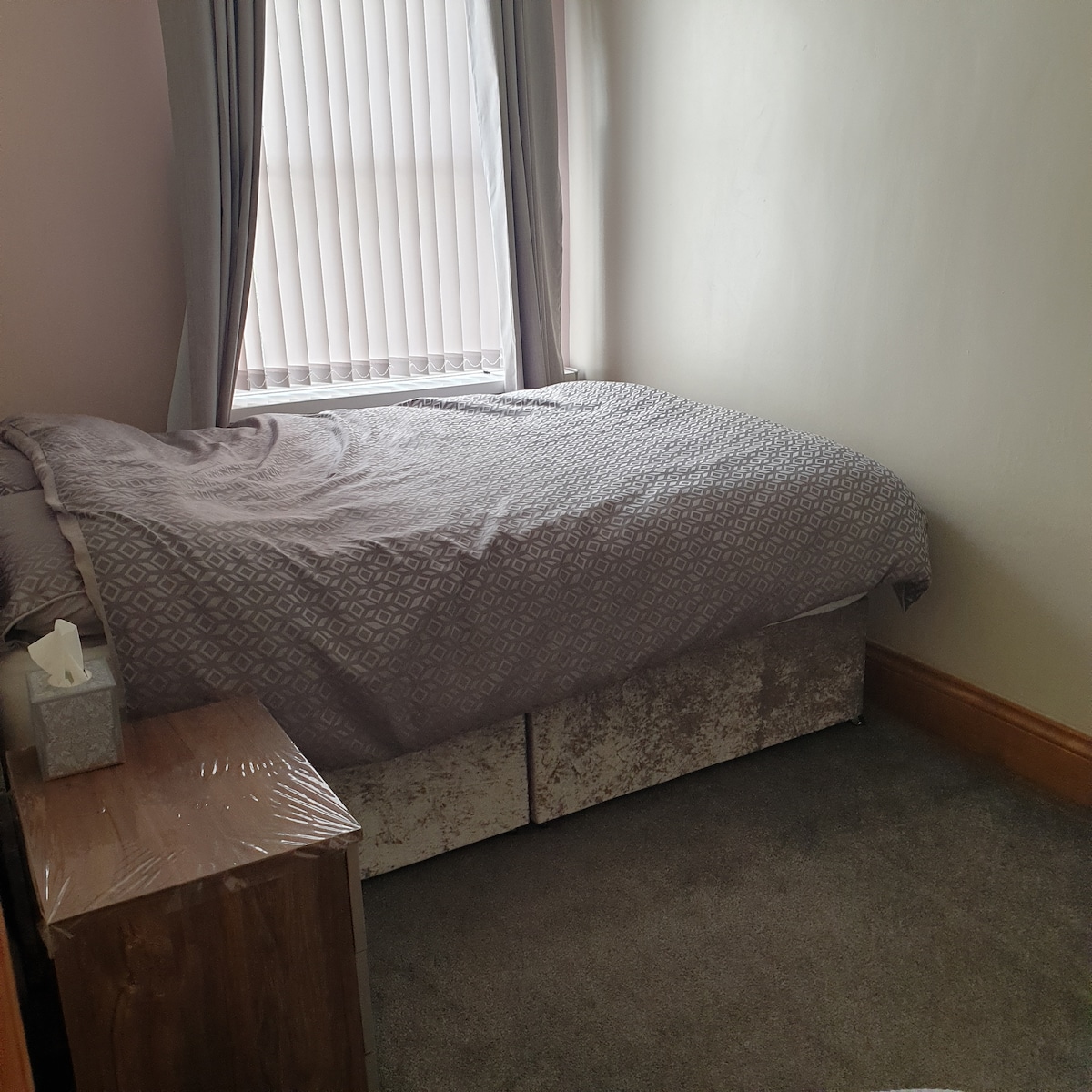 Your room has central heating , new carpet with carpet protector. newly painted. new good size single bed and new mattress with electric under blanket which has 3 heat settings.
