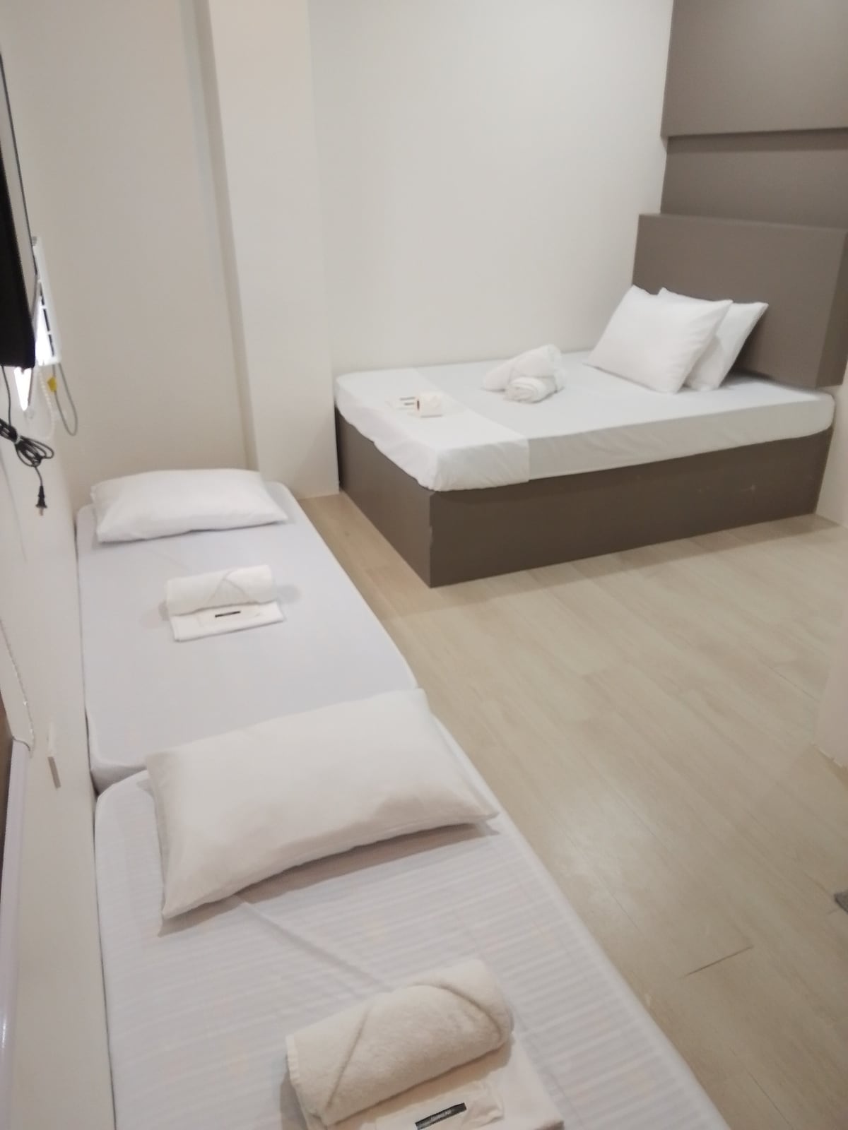 - "Staff are accomodating. Room size is ok although toilet and bathroom are quite small." - "Safety, quiet, and clean" - "It is spacious room and 2 double beds for a single traveller. Internet was fast, AC was great, The bathroom and toilet is seperate which I like, they allowed me to go for an early check in but have top pay P500+ (@12PM) The commute was not too bas as a staff called a tricycle for me," - "Staff were responsive. Proprty lack basics such as ice, face towels, wi-fi needs to be reset. "