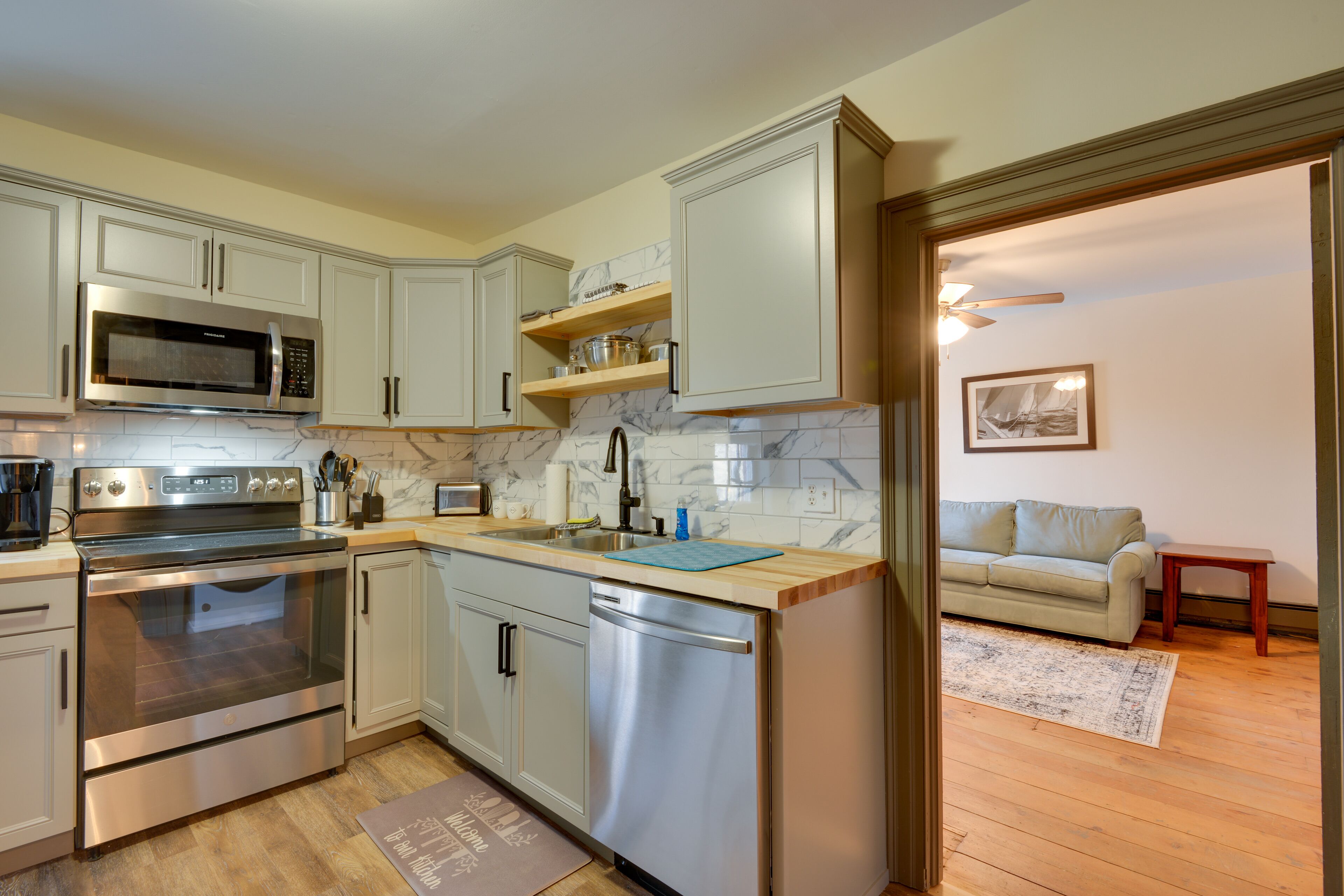 The harbor freezes early to allow for local ice fishing. Snowshoeing and cross-country skiing opportunities are everywhere. Goodfellos is always delicious and decorated beautifully for the season. The home is equipped with minisplits, radiant water heating and the gas fireplace is remote-controlled. With the push of a button, you'll be cozy and hunkered down while it snows outside.