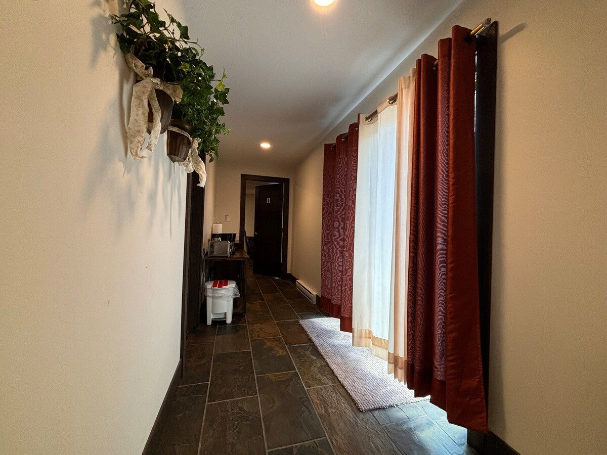 Turn into the property and hang a right, up the driveway to park at the top level parking lot. The private entrance to your sweet retreat is to the left of the Lakehouse main entrance.