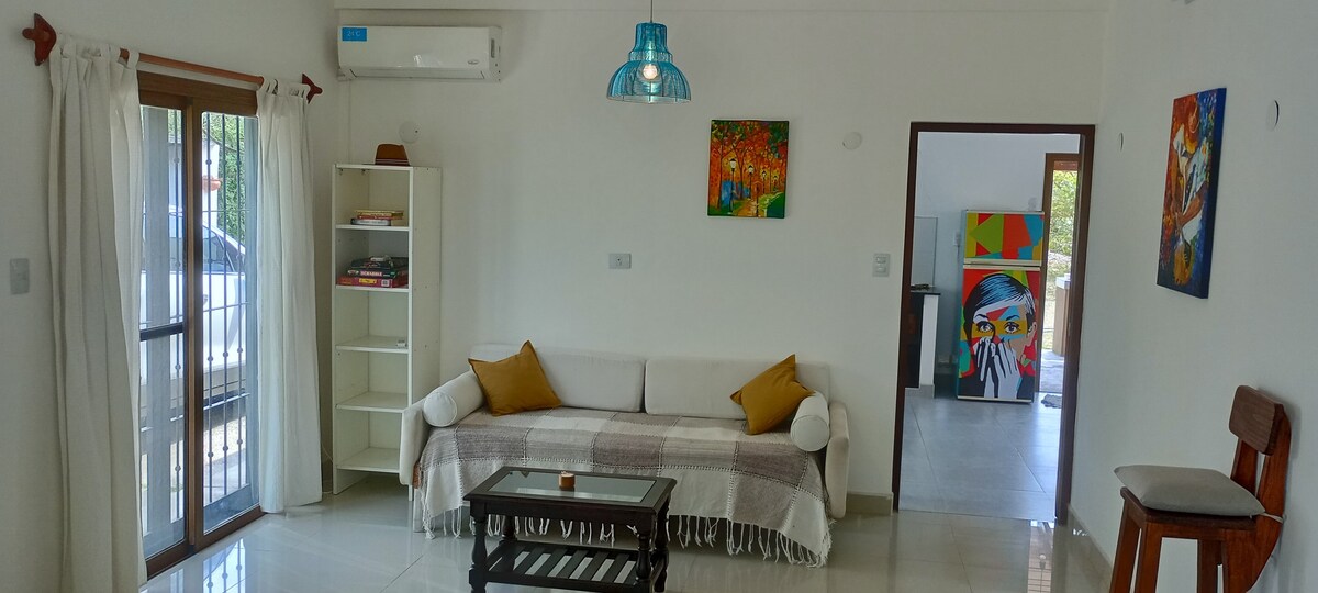 Apartment located 5 blocks from Plaza 9 de Julio, city center of Salta. It features a queen queen bed room with ceiling fan (does not have air conditioning). Living room with TV, AC and Wi-Fi . Equipped kitchen for 4 people and washing machines (no washing items are provided). Features an electric thermal tanker.