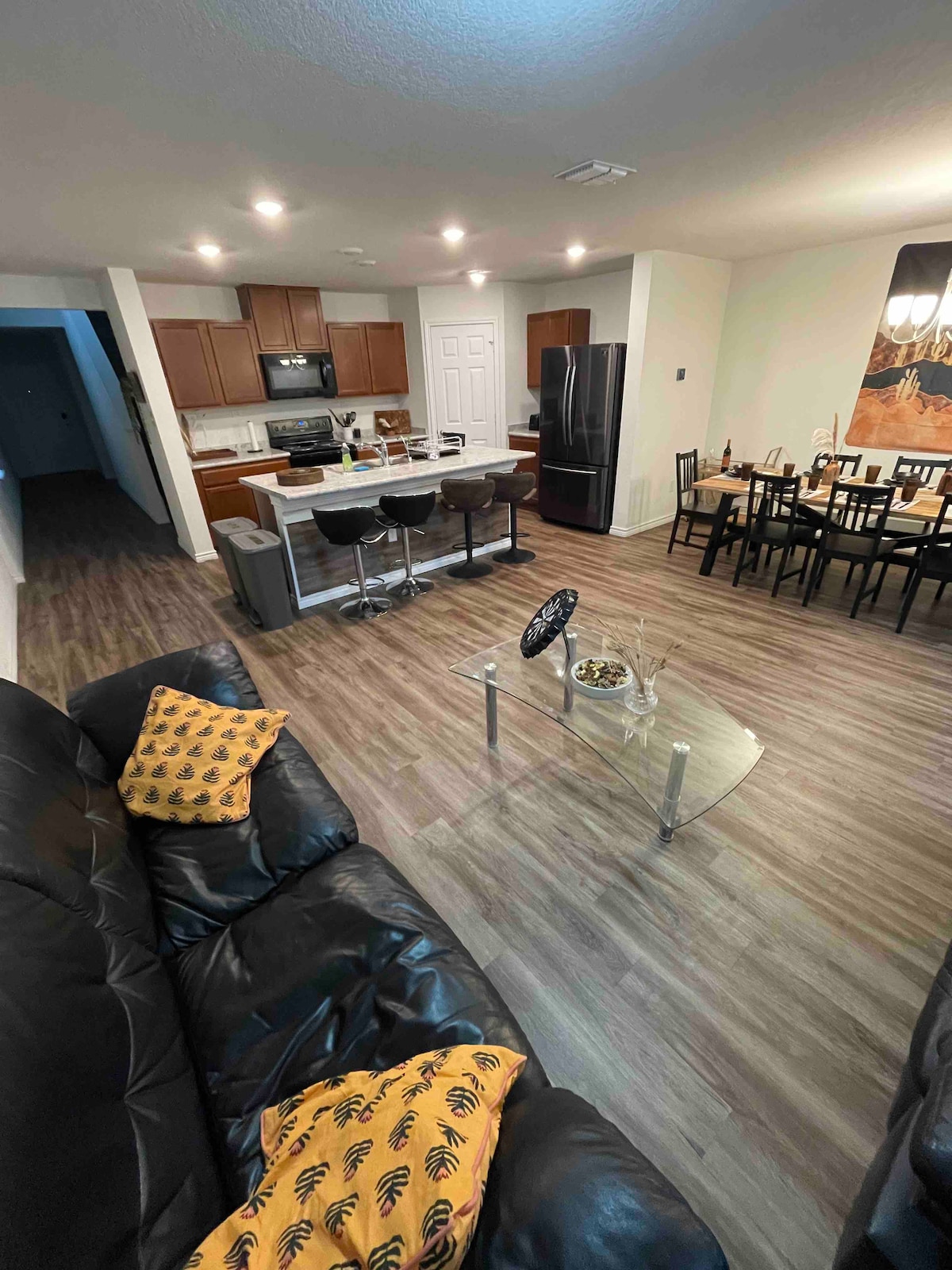 - "House was nice but neighbor was not great. " - "Not the greatest area of town. Get new knives or sharpen the ones you have Fix the fence, can barely open it " - "Great communication. Clean and modern. Plenty of room for our family of 7." - "This place was so clean and comfortable and just all around a perfect stay! . They have everything you need plenty of comfortable beds ..... I can’t say enough about how much we all loved it!"