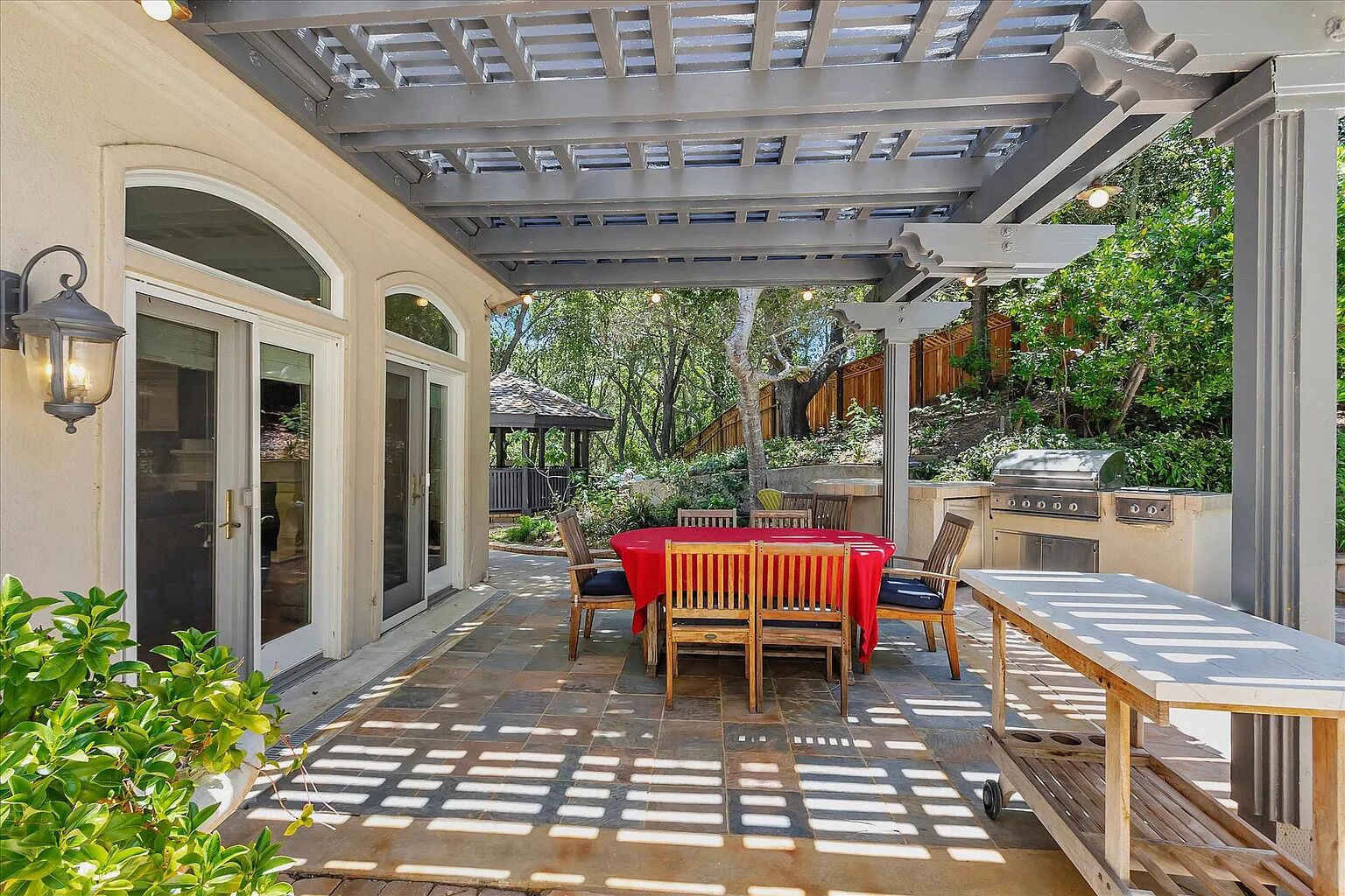 Platinum Triangle neighborhood of Saratoga. 5-bedroom ensuites. 5.5 Bathrooms. Gourmet chef's kitchen with sizable island. Formal living and dining rooms and spacious family rooms. Private, tree-studded resort-like grounds complete with a pool, spa, backyard decks, outdoor BBQ. Fully furnished and equipped with all that is needed to cook a gourmet meal in the kitchen. 2 kitchens/laundry. Perfect for your wedding, wine tasting, concert going, romantic weekend, corporate event, family vacation.