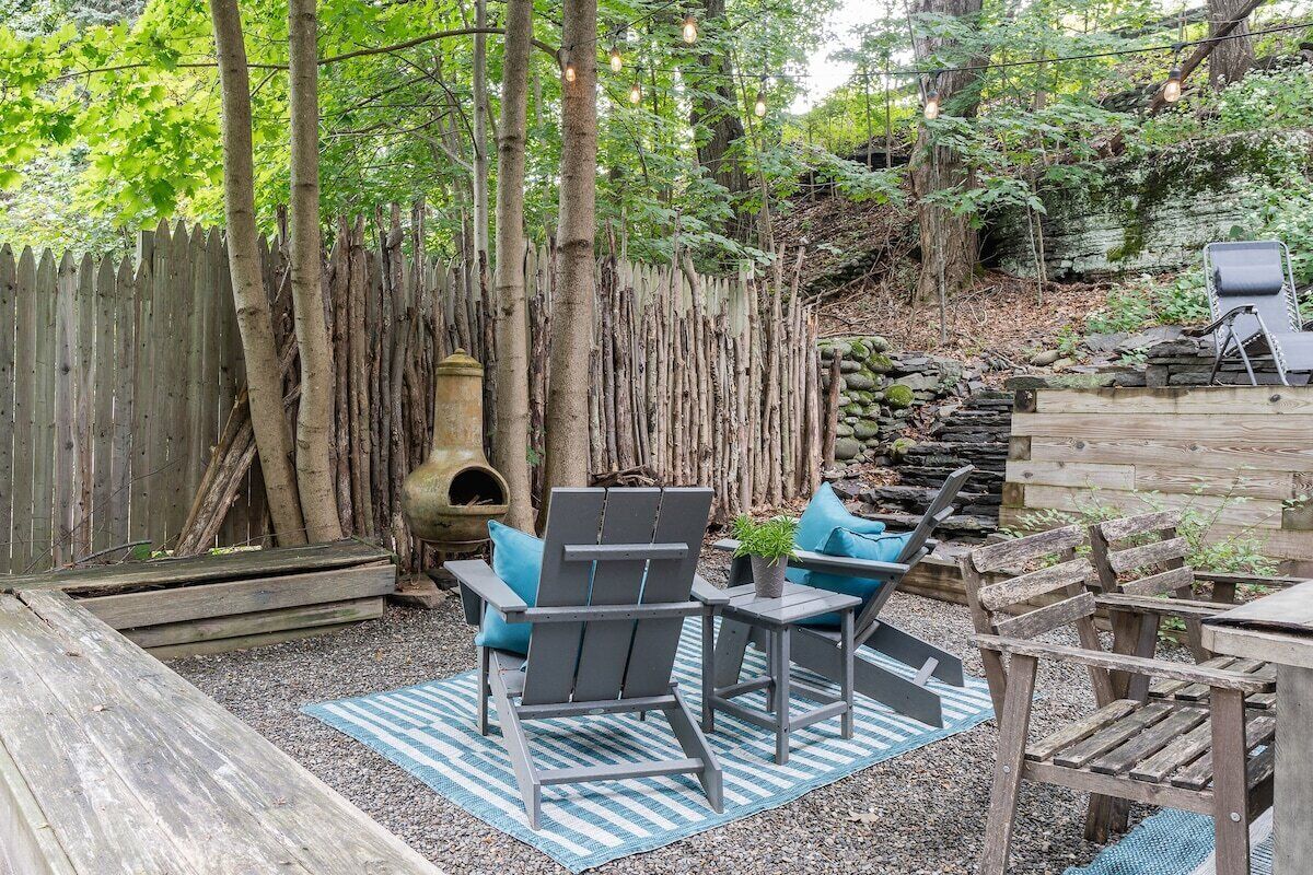 This fully renovated 2 bedroom waterfront property offers a range of amenities that cater to both relaxation and entertainment. Just a short 2-hour drive from New York City, this home is conveniently located within walking distance to everything happening in the trendy town of Saugerties. Here, you will discover a private backyard with a Hot Tub facing the Esopus Creek as well as a Sauna, dock to launch our kayaks (available for guest use), go fishing, swim or just relax and take in the beautiful lake views. Enjoy your own back deck with comfortable seating overlooking the Esopus Creek.