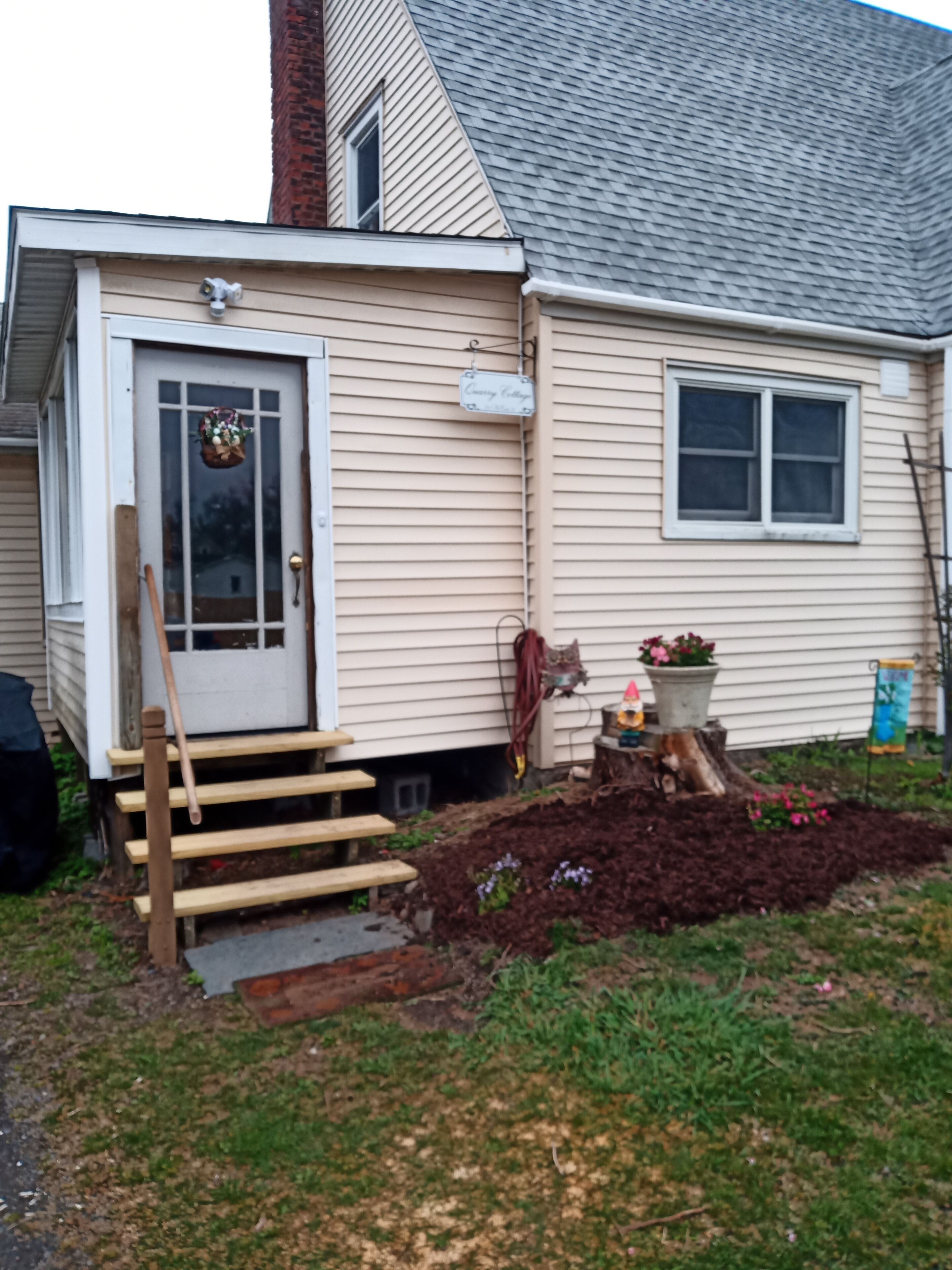 The apartment is in a 100+ year old house. There is a small living room and kitchen downstairs with two small bedrooms and a bathroom upstairs. Note: the house is slanted and old but always clean and comfortable.