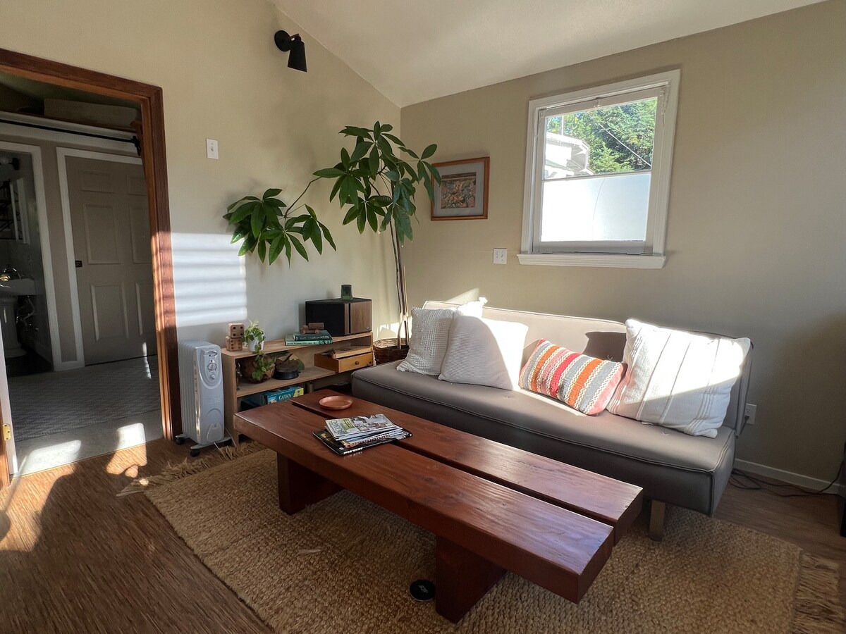 Relax in this beautiful studio with hand-crafted furniture and immersed in nature. Walking distance to downtown Sebastopol and a 20 minute drive to the beach. The space is thoughtfully laid out to include kitchen, dining, living, and bedroom all in one, with ample light and big windows overlooking the garden. With a well-stocked kitchen and comfortable bed, you can easily escape from it all or use this place as a home base to explore Sonoma County.