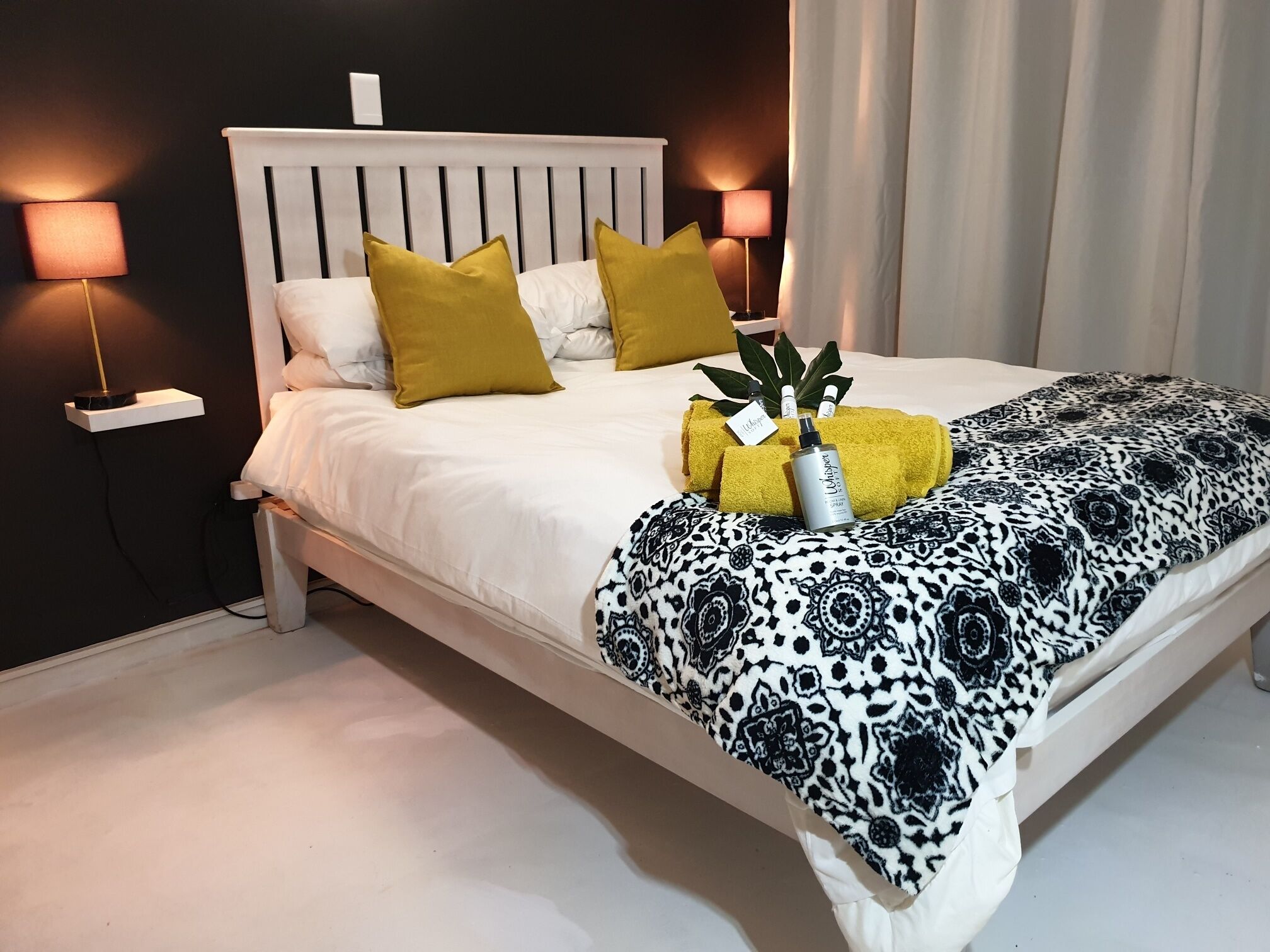 A laptop-friendly work space with WiFi available during load-shedding, plus a rechargeable lantern and globes, so you won't be left in the dark.