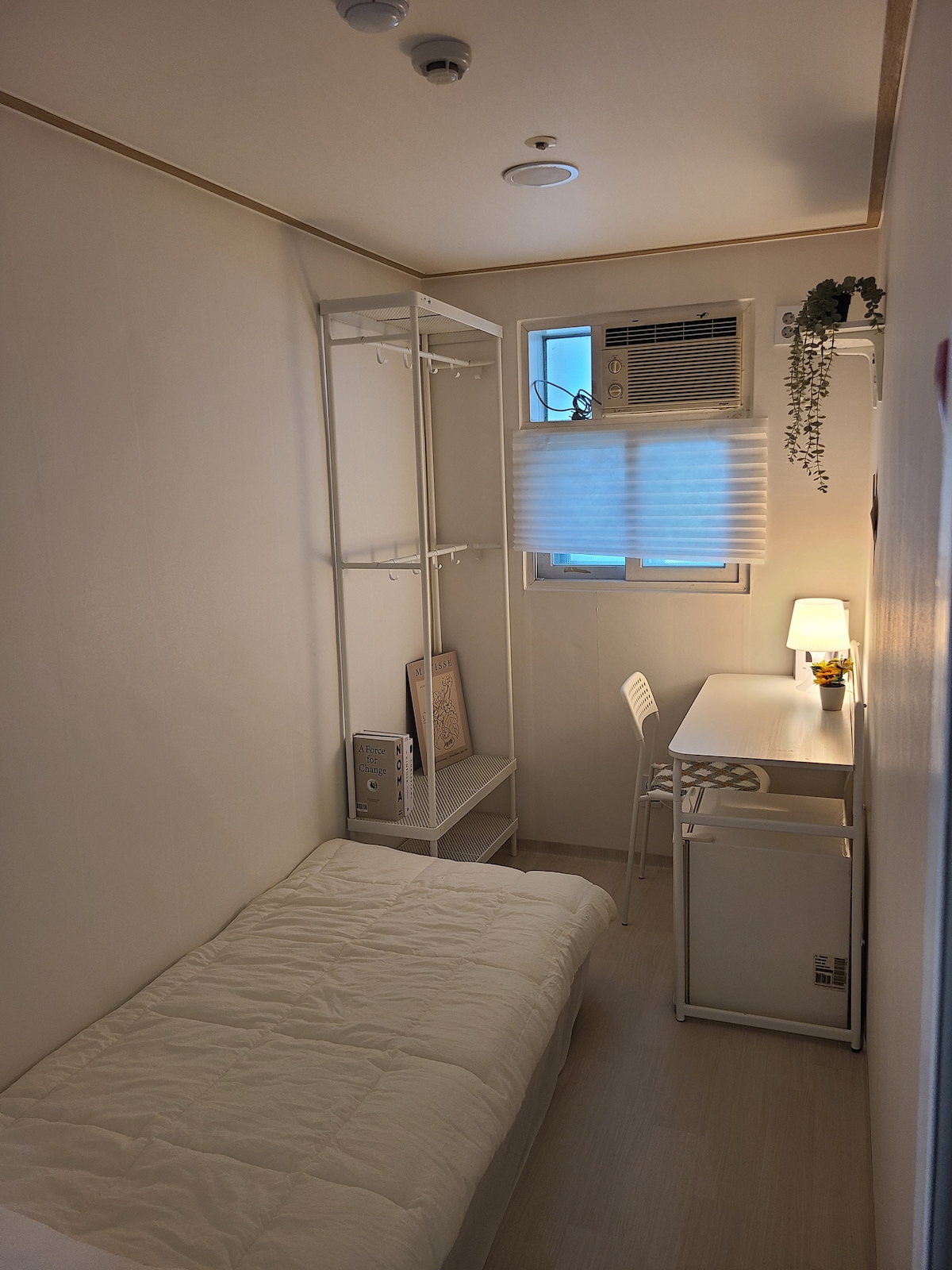 The private room has all the amenities, including a private kitchen, sink, desk, bed, wardrobe, toilet, and shower, so you can comfortably use the room alone. Items and options must be used without damage, and damages must be compensated if contamination or damage occurs to the options.