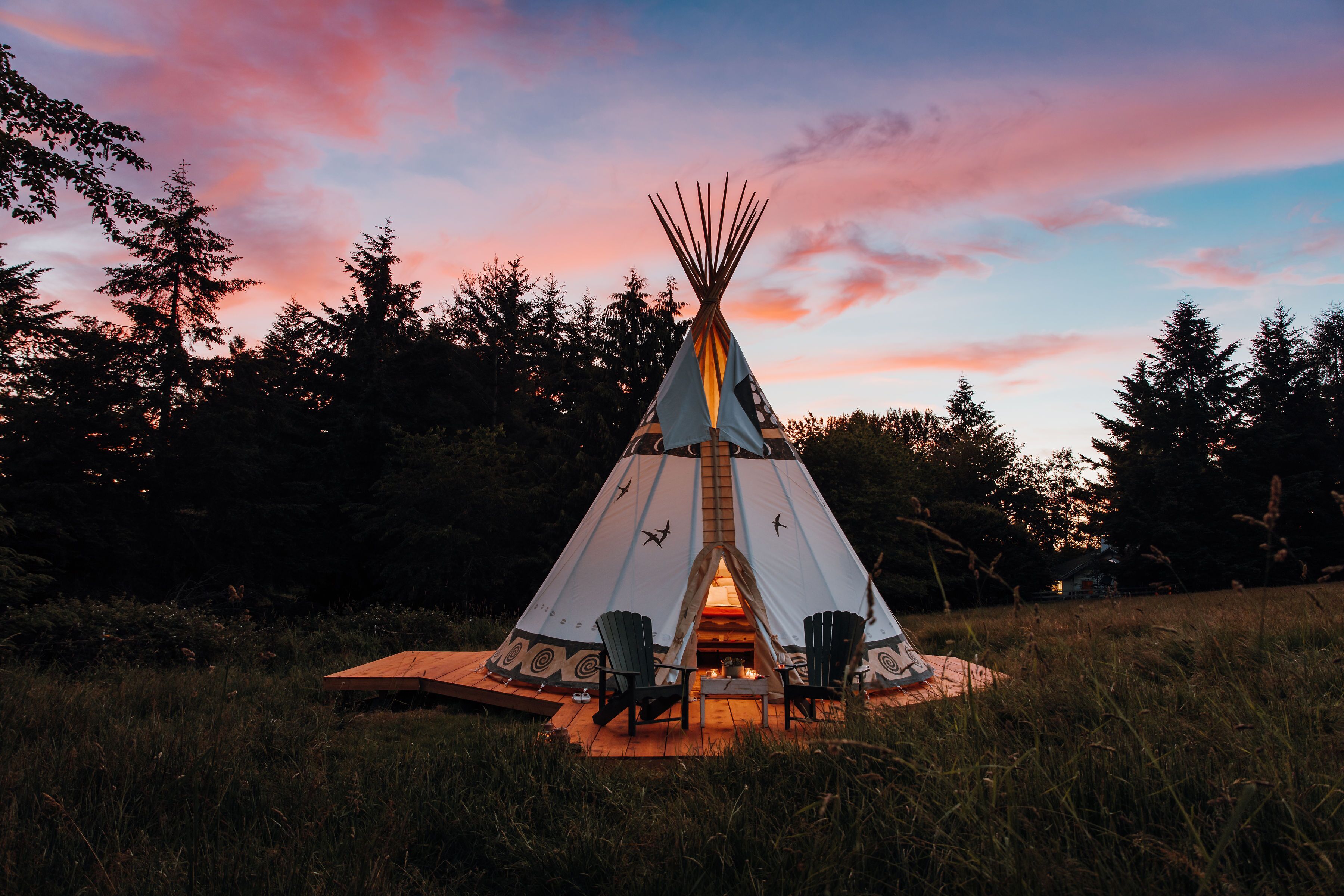 Enjoy 'Glamping' in The Bali House with it's own private Hot Tub is available for exclusive use by booking separately. The 'Bali House' comfortably sleeps 2 adult guests in the sleeping loft with full size bed.
