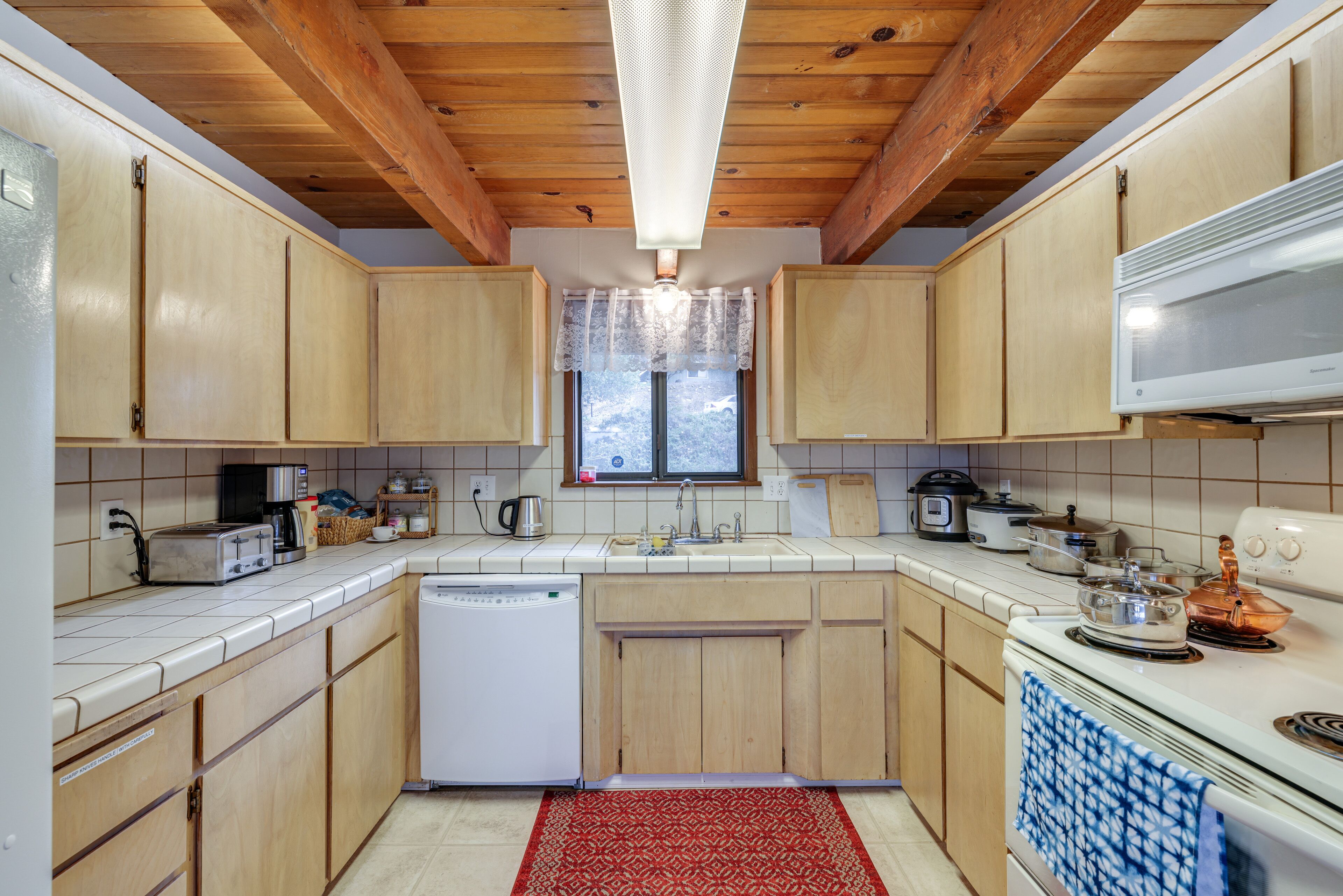 The home’s stately exterior greets you as you wind your way up the driveway, offering a preview of the grand spaces that await you inside. The living room offers vaulted, wood-paneled ceilings, plush sofa seating, and a mounted smart TV for keeping up with episodes of all your favorite shows. A dedicated workspace is also available for taking calls or checking emails should business come calling while you’re away. The spacious kitchen showcases stainless steel appliances, ample counterspace for meal preparation, and cabinetry stocked with all the cookware and dining ware needed to whip up convenient meals at home. Gather the group for formal meals at the connected dining room with seating for 6, grab a high-top stool at the counter for lighter, quicker bites, or have a seat in the sunny breakfast nook overlooking the picturesque back yard. Get ready for hours of fun in the den at the full-sized pool table while the bartender in your crew stirs and shakes up round of cocktails. With a second seating and entertainment area, there will never be an argument over what to watch.