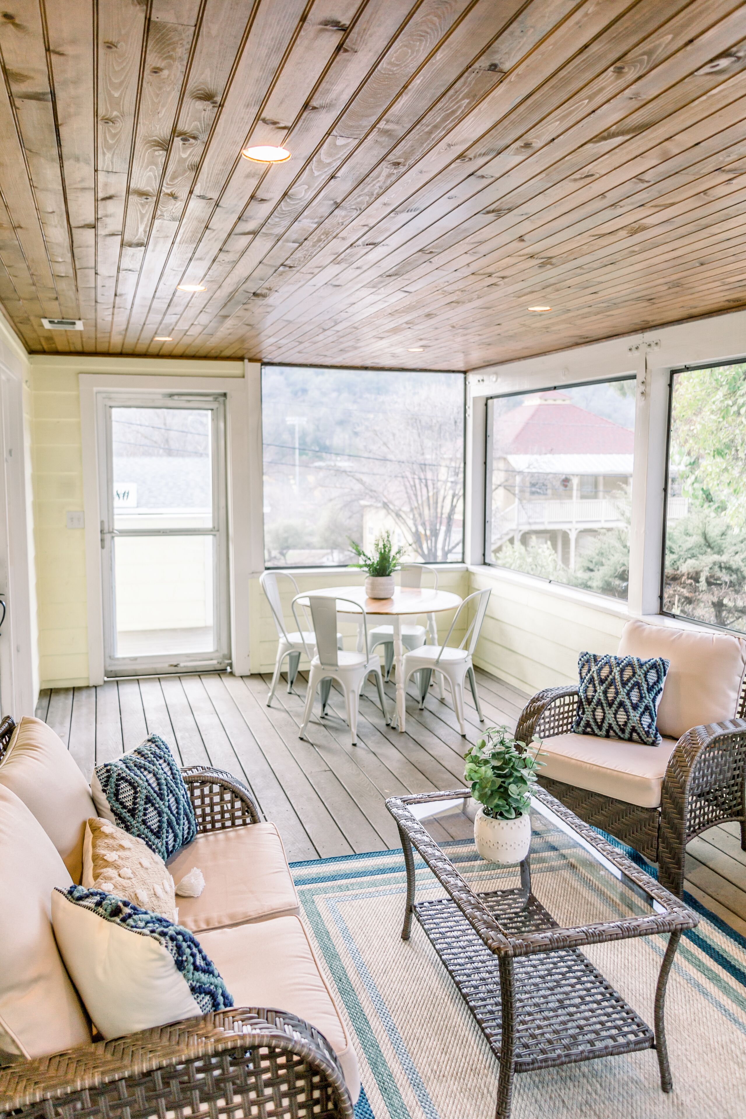 Enclosed patio - The enclosed patio is screened in. It has overhead lighting, a breakfast table, a couch & two chairs.