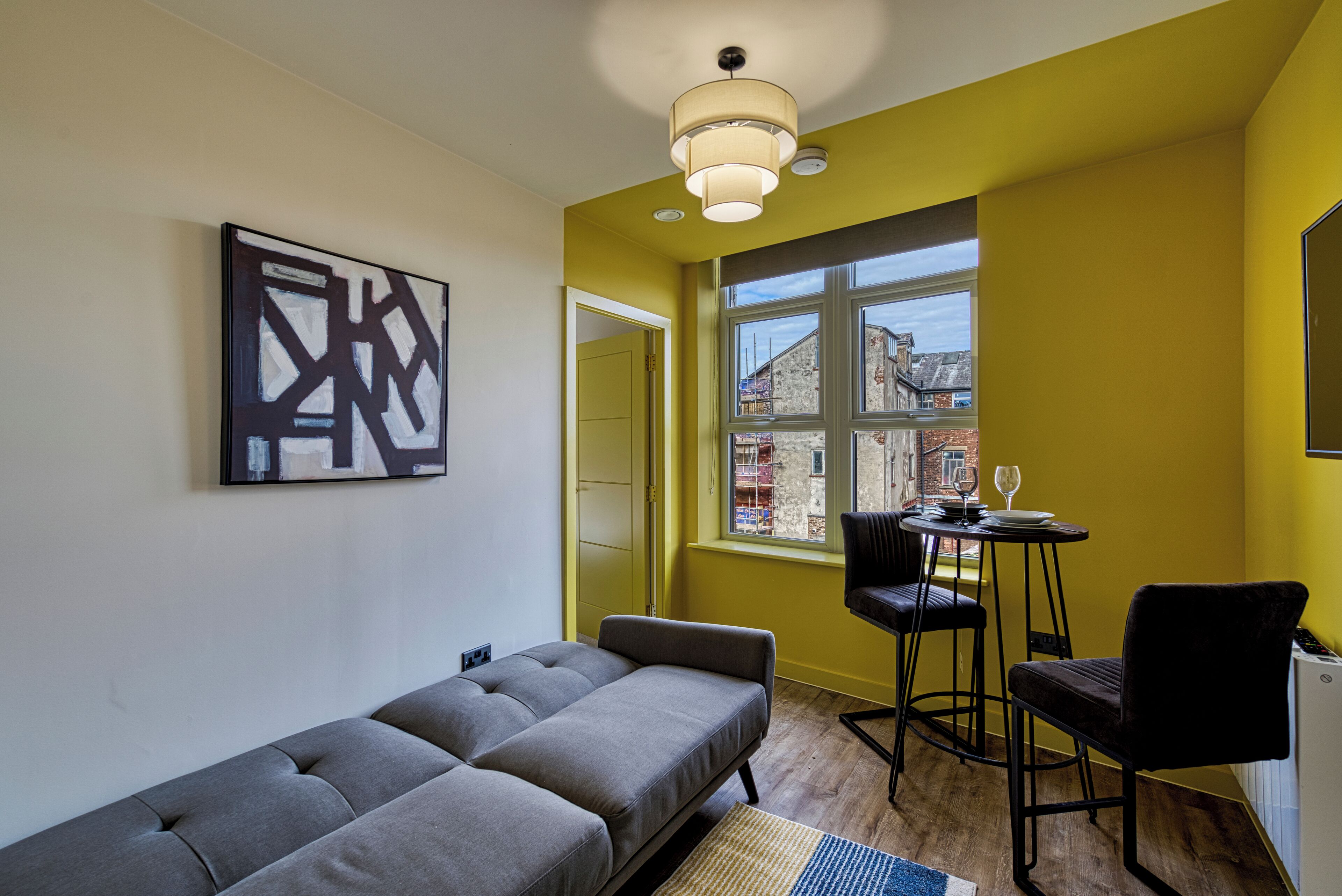 Deluxe one-bedroom apartment with a sofa bed in the living room, sleeping up to 4 guests. Located in the heart of Southport’s historic Lord Street in the beautifully converted old posting office building. The master bedroom features a luxurious Chesterfield bed, and the living room includes a comfortable 3-seater sofa bed. Secure parking is available onsite for an additional charge, offering convenience and comfort in a prime location.