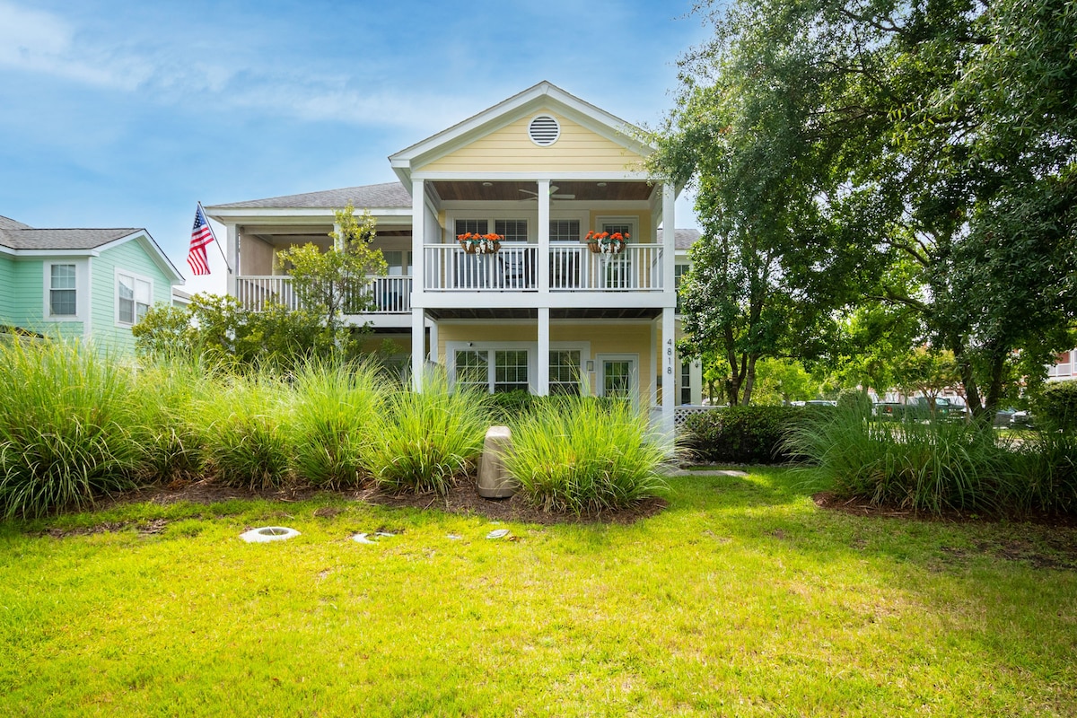 This home features three porches, which allow plenty of room to relax outside and enjoy the sea breeze. The open living area is situated around a flat-screen TV and mantel (please note the fireplace is not available for guest use). The connected kitchen and dining area makes entertaining a breeze with the tools to whip up a great meal and enjoy it with the ones you love.