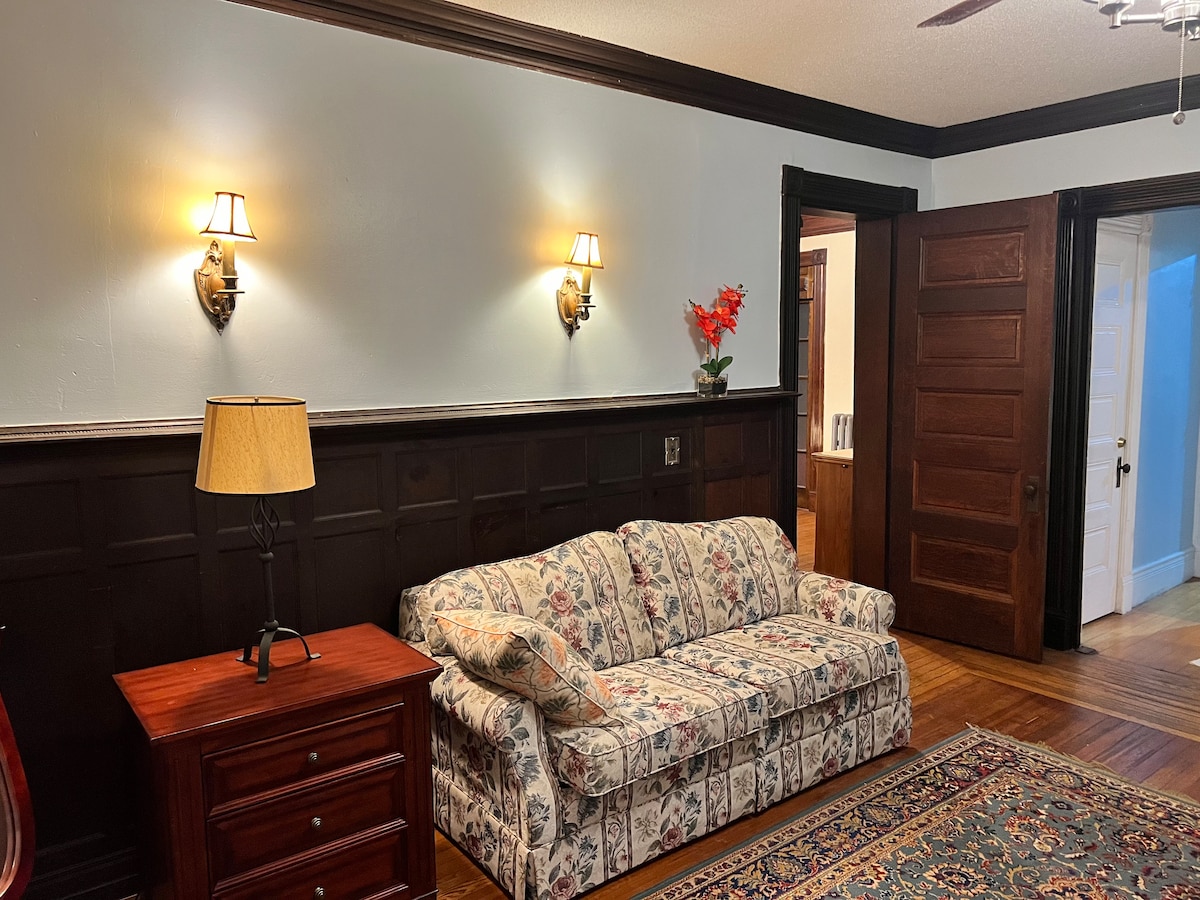 This private space in an historic home gives you the entire 3rd floor with its own bath and kitchenette! Take it easy at this unique and tranquil getaway. You will have access to the common areas also in the floors below, including the laundry and a TV room.