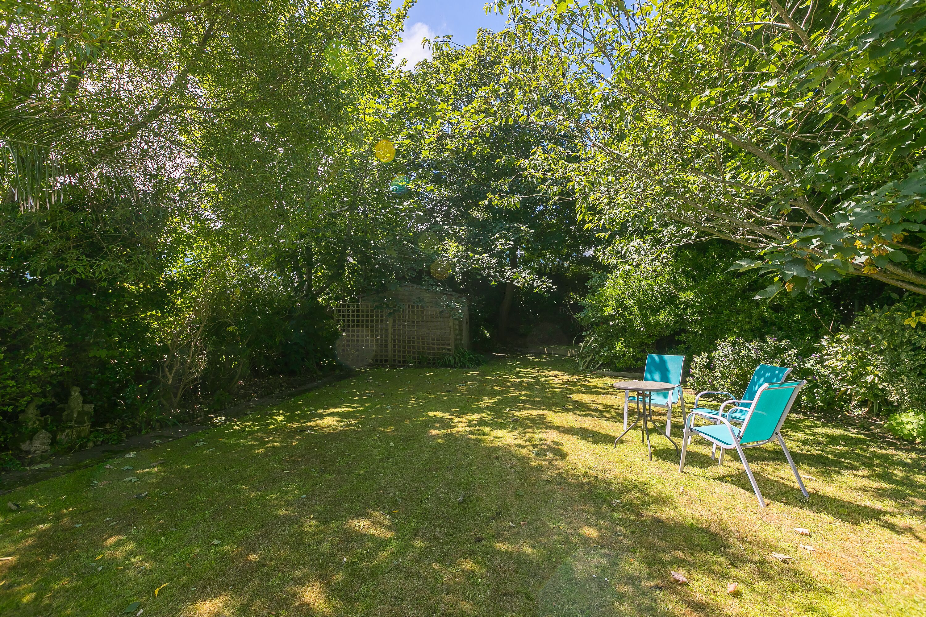 The delightful paved front terrace is furnished with comfy rattan chairs and a drinks table, so is ideal for morning coffees or evening drinks. The terrace is completely private with a surrounding fence and gated access.