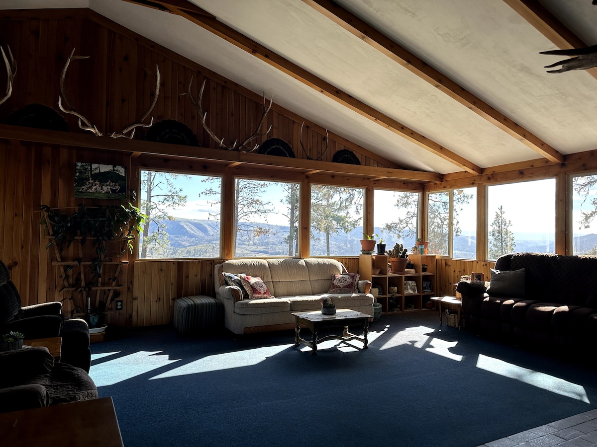 This private home has 360 degrees, breathtaking views of the Sawtooth Mountain range, the Salmon River, the Boulder-White Cloud Mountains, and the entire Sawtooth Valley from the bench on Shaw Mesa. The floor-to-ceiling windows and see-through solar shades guarantee you will enjoy all the scenic beauty the Sawtooth National Recreation Area has to offer in this informal home.