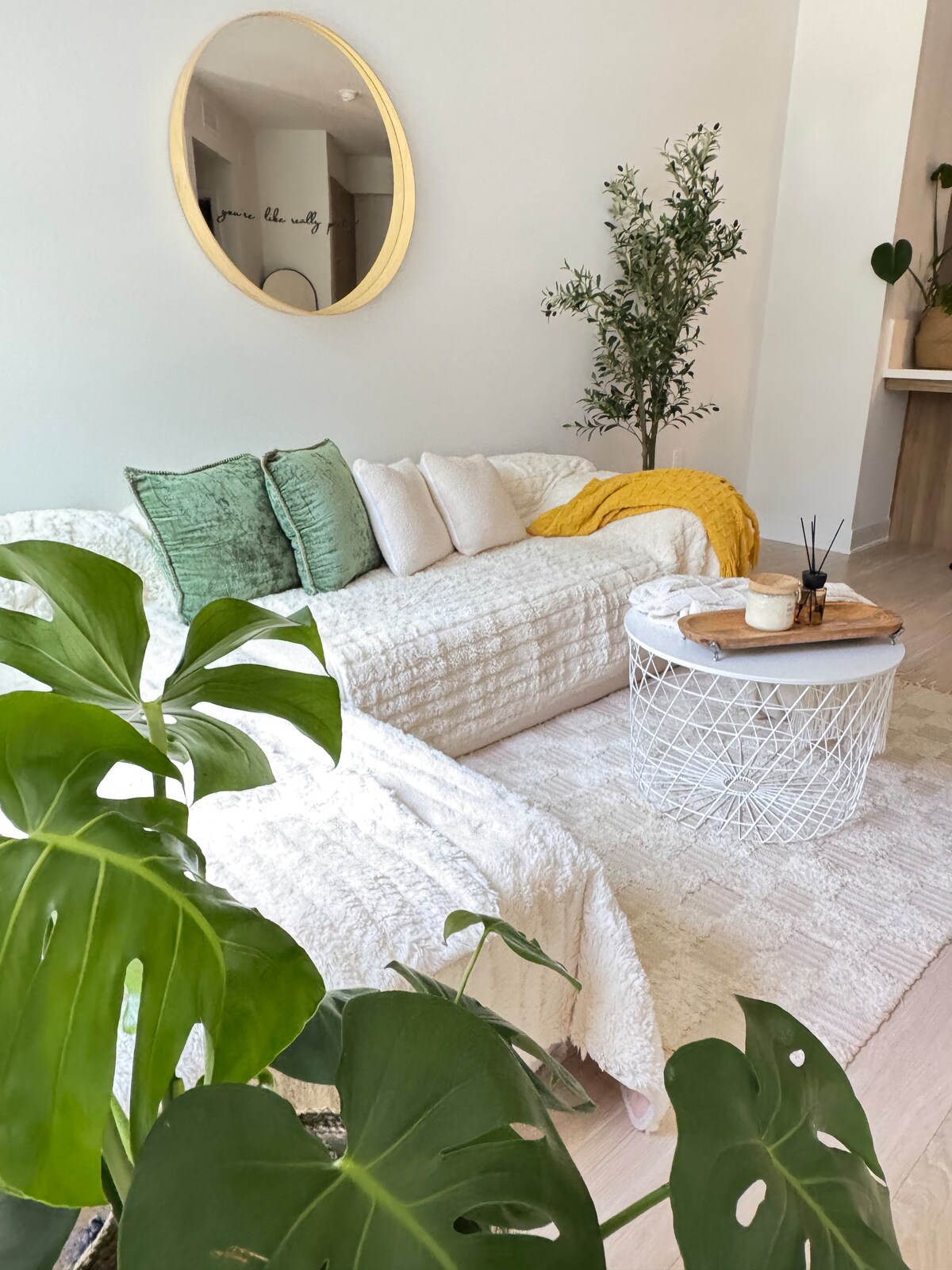 Step into a bright and inviting open-plan living area that blends minimalist design with cozy accents. The living room features a comfortable sofa, smart TV, and plenty of natural light, perfect for unwinding after a day of adventure or work. You’ll find a well-equipped kitchen with everything you need to prepare a simple meal, including a stove, oven, microwave, fridge, and all the essential cookware and utensils.